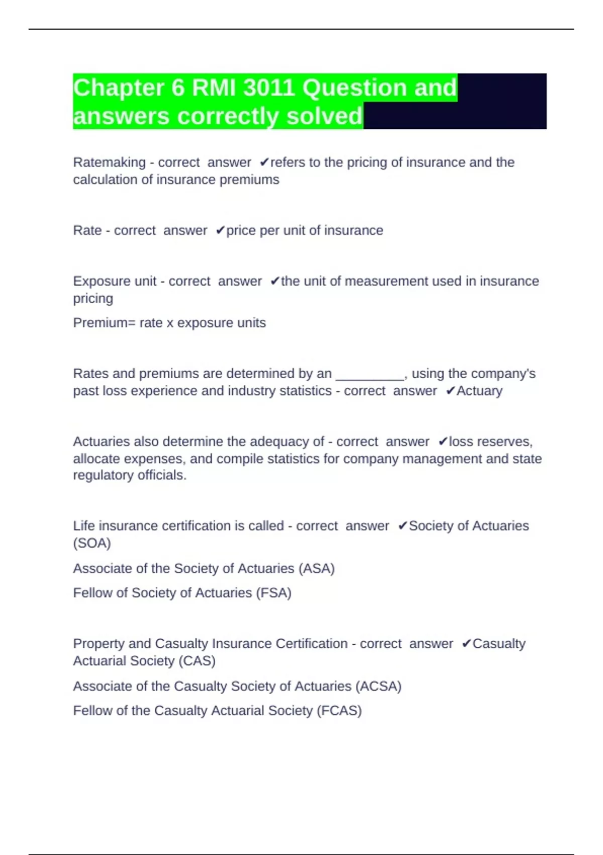 RMI 3011 Exam 3 Study Guide RMI 3011 Florida State University -Question and answers correctly