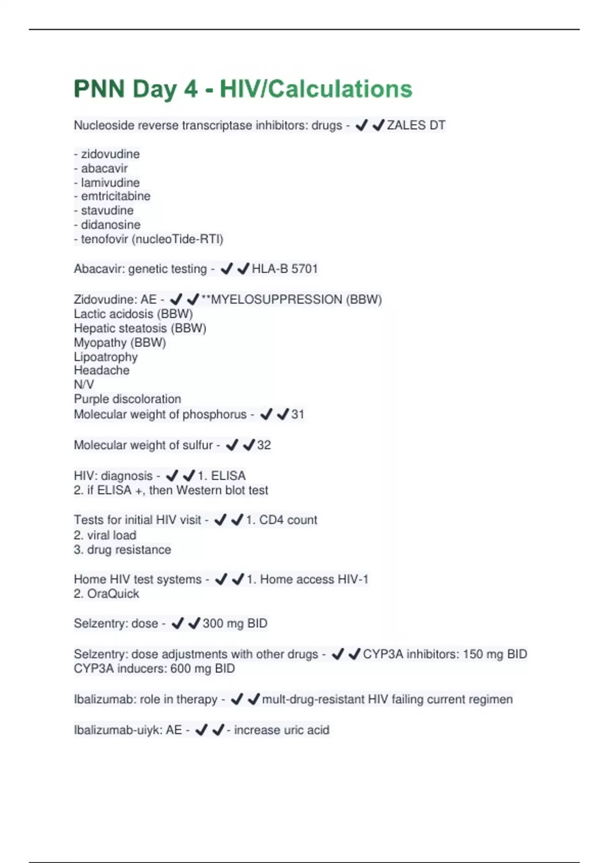 PNN Day 4 - HIV/Calculations (Questions + Answers) Verified 100% Correct!!.