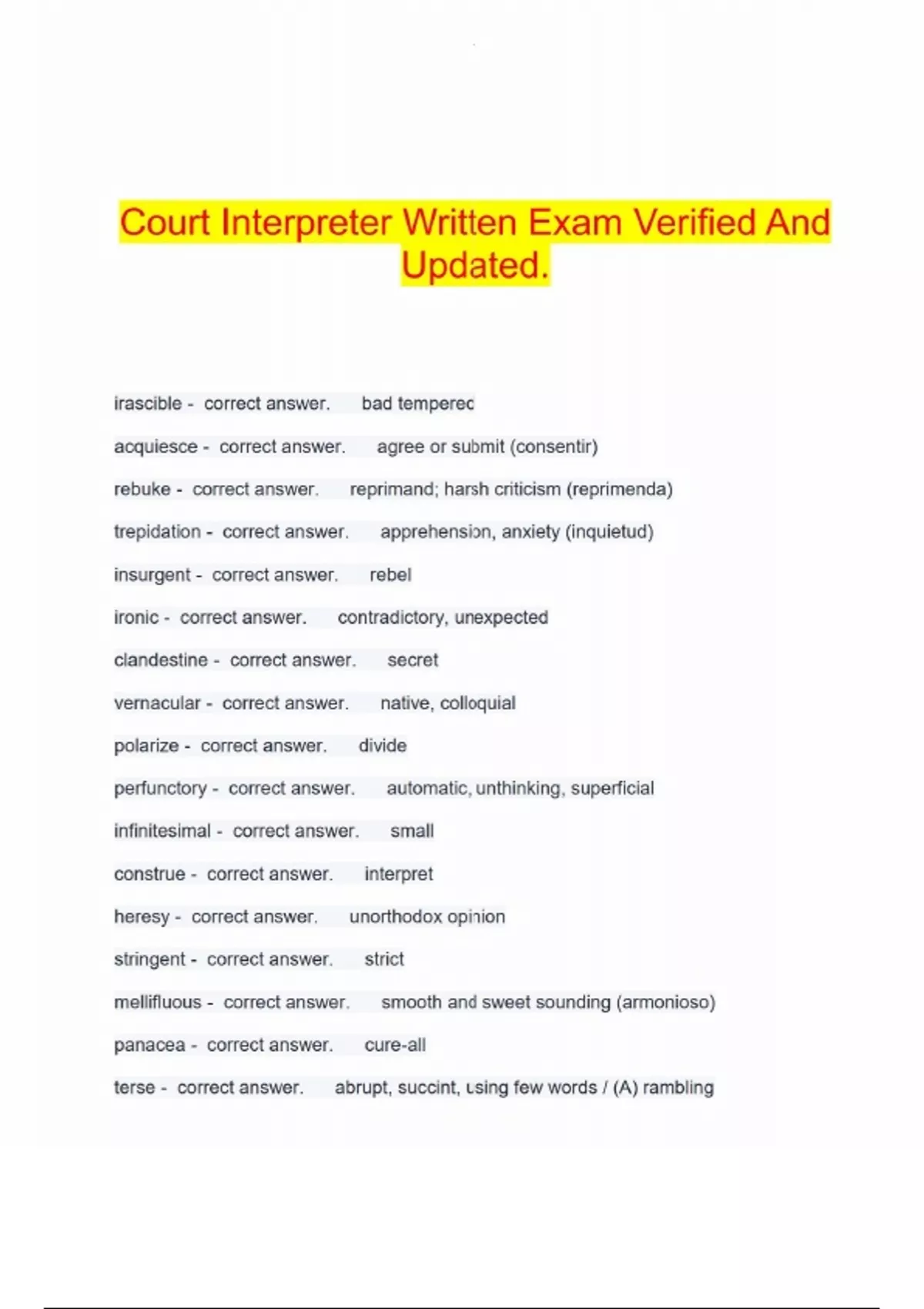 Legal Terms For Court Interpreter Written Exam Verified And Updated.Court Interpreter Written Exam Verified And Updated.Court Interpreter Written Exam Verified And Updated.