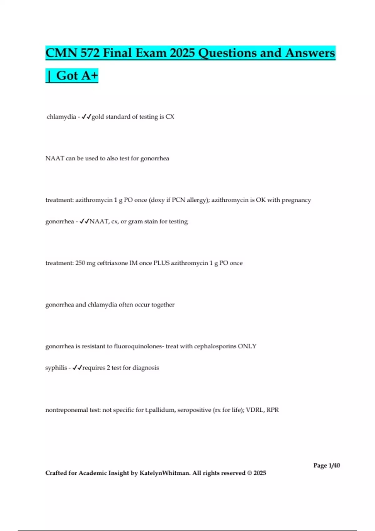 CMN 572 STD Exam 2025 Questions and Answers 100% Pass