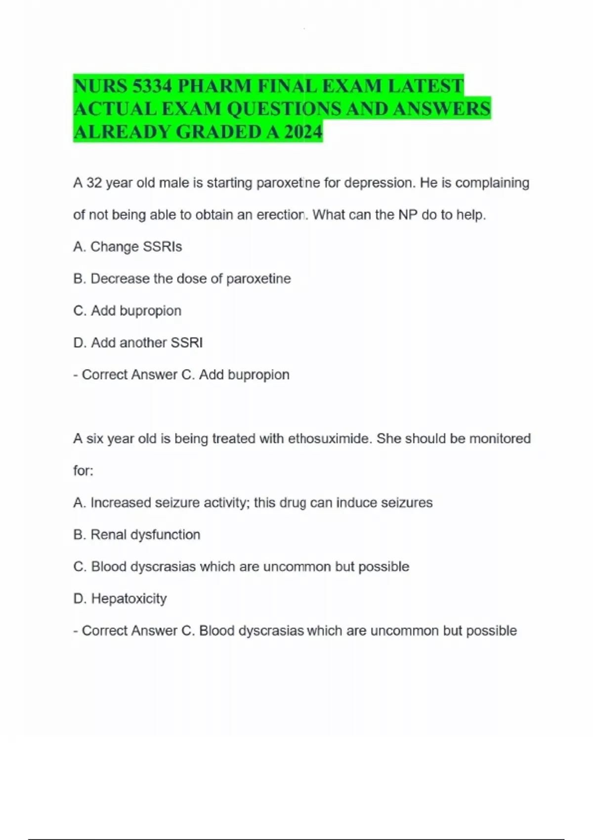 ONLINE BEST EXAM AND ANSWERS SELLER Ace Your Exams with Our Exceptional Study Materials! Unlock your full potential with our proficiently crafted revision materials. Whether you're prepping for exams, quizzes, or looking to solidify your understanding, Our study guides, summaries, and Questions banks are designated to simplify complex topics and enhance your knowledge retention. What to Expect: Comprehensive Summaries: Key points made easy for quick revision. Test Banks: Practice with real exam- questions. Exam Prep Guides: Focused content to boost your scores. Instant Access: Download and start studying immediately! Don’t just study harder—study smarter! Excel in your exams with our right-hand materials. DOWNLOAD THE LASTEST UPDATED PAPERS TO BOOST YOUR GRADES TO 100% Study, Learn and Excel.
