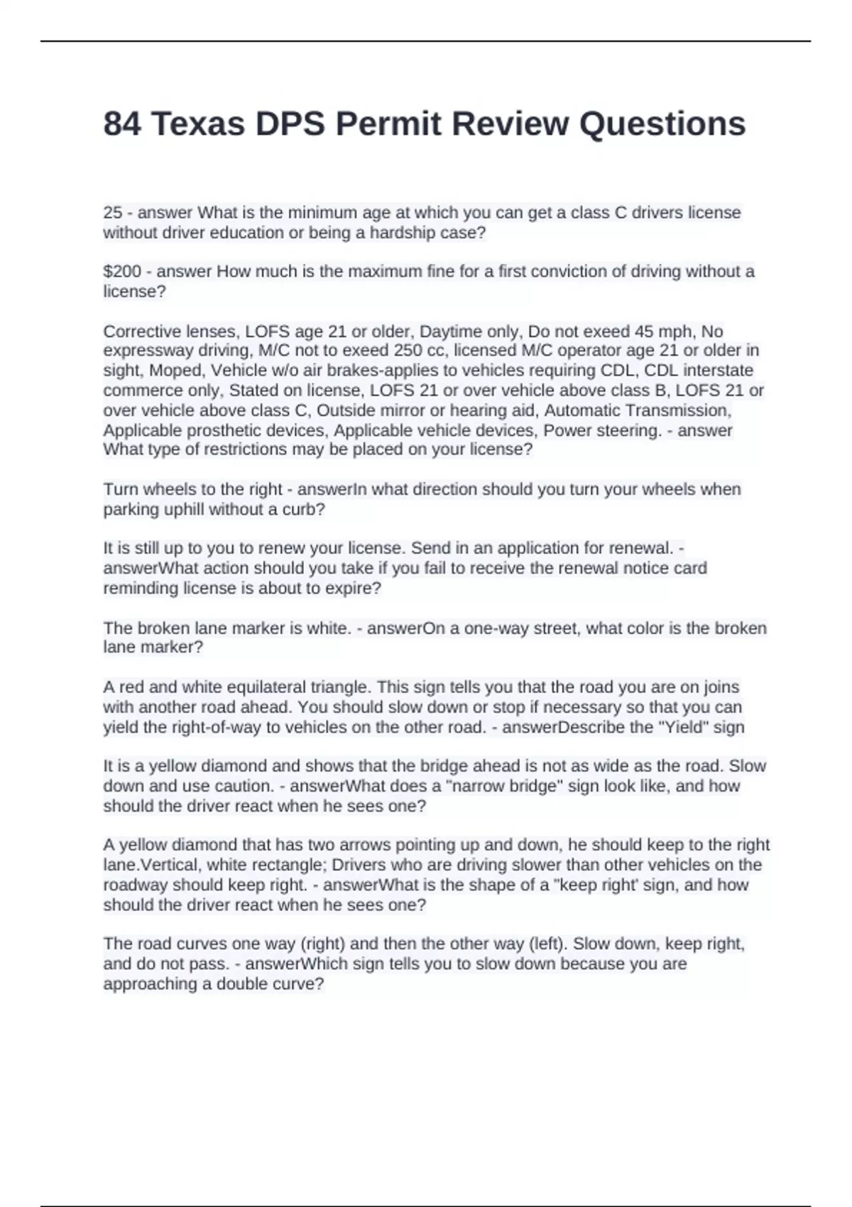 Exam (elaborations) Texas DPS Written Test Questions and Answers 100% Solved Exam (elaborations) Texas DPS Written Knowledge Test Part 1 Questions and Answers 2024 Exam (elaborations) Texas DPS Study and Review Questions with correct Answers Exam (elaborations) Texas DPS Practice Tests Questions and Answers 2024 Exam (elaborations) Texas D