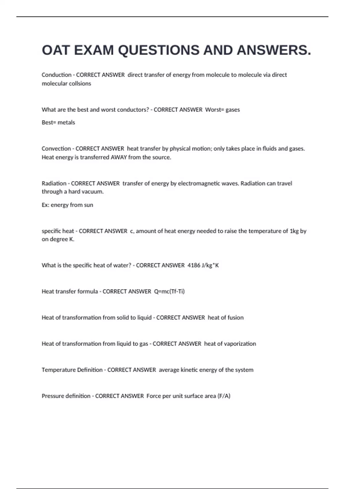OAT EXAM SOLUTION BUNDLE PACK.ALL SECTIONS CORRECTLY ANSWERED.