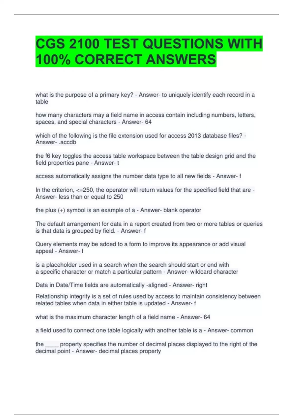 BUNDLE FOR CGS 2100 EXAM QUESTIONS AND ANSWERS PASS GUARANTEED LATEST UPDATE