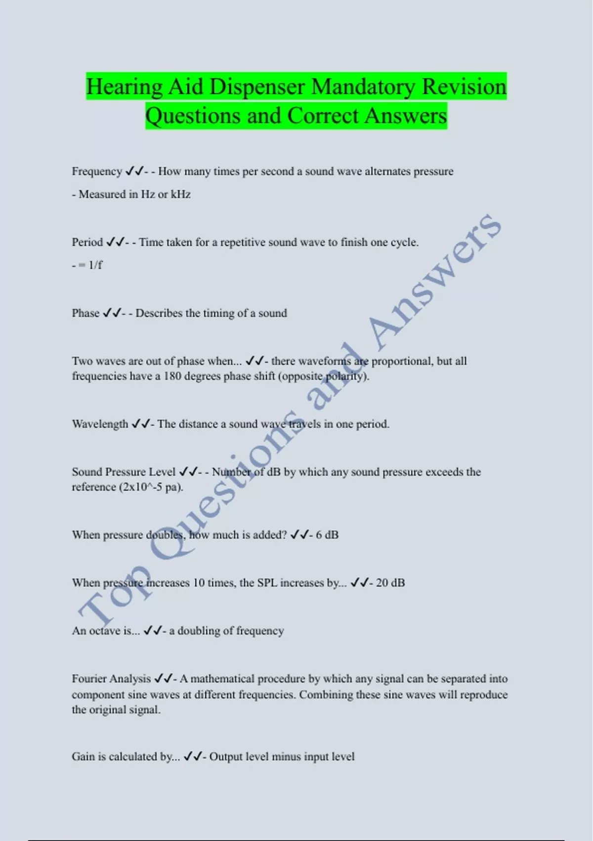 Hearing Aid Bundled Exam Questions and CORRECT Answers