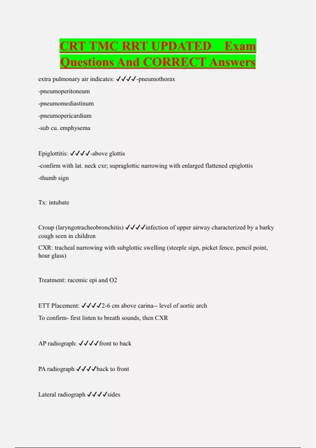 CRT Bundled Exam Questions and CORRECT Answers