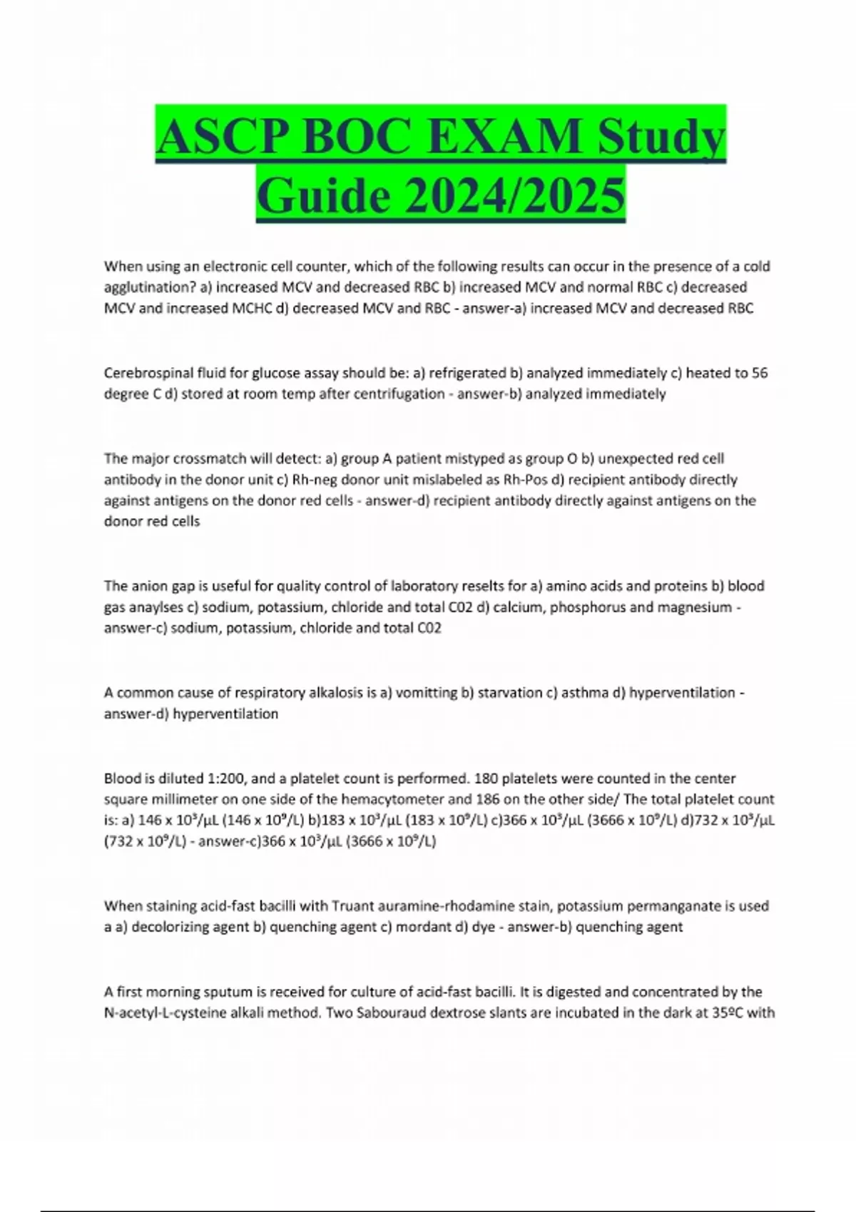 ASCP-Chemistry section Questions and Answers 2024/2025