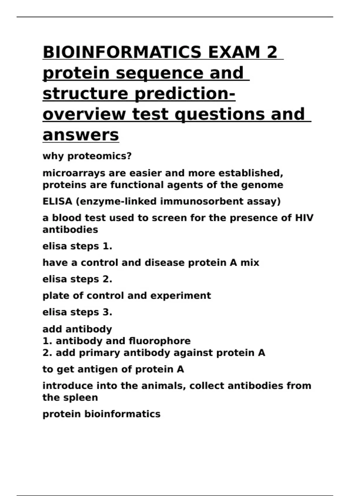 BIOINFORMATICS EXAM 2 protein sequence and structure prediction-overview test questions