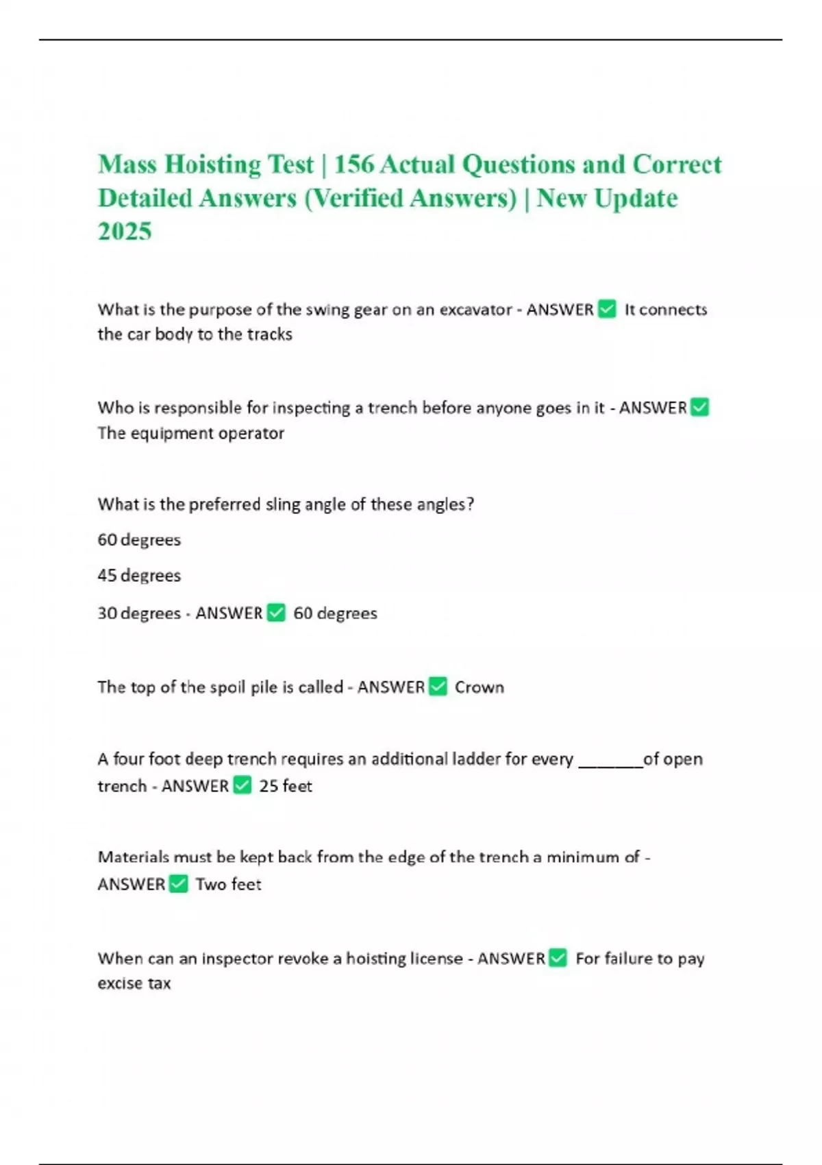 Mass Hoisting Test | 156 Actual Questions and Correct Detailed Answers (Verified Answers) | New Update 2025