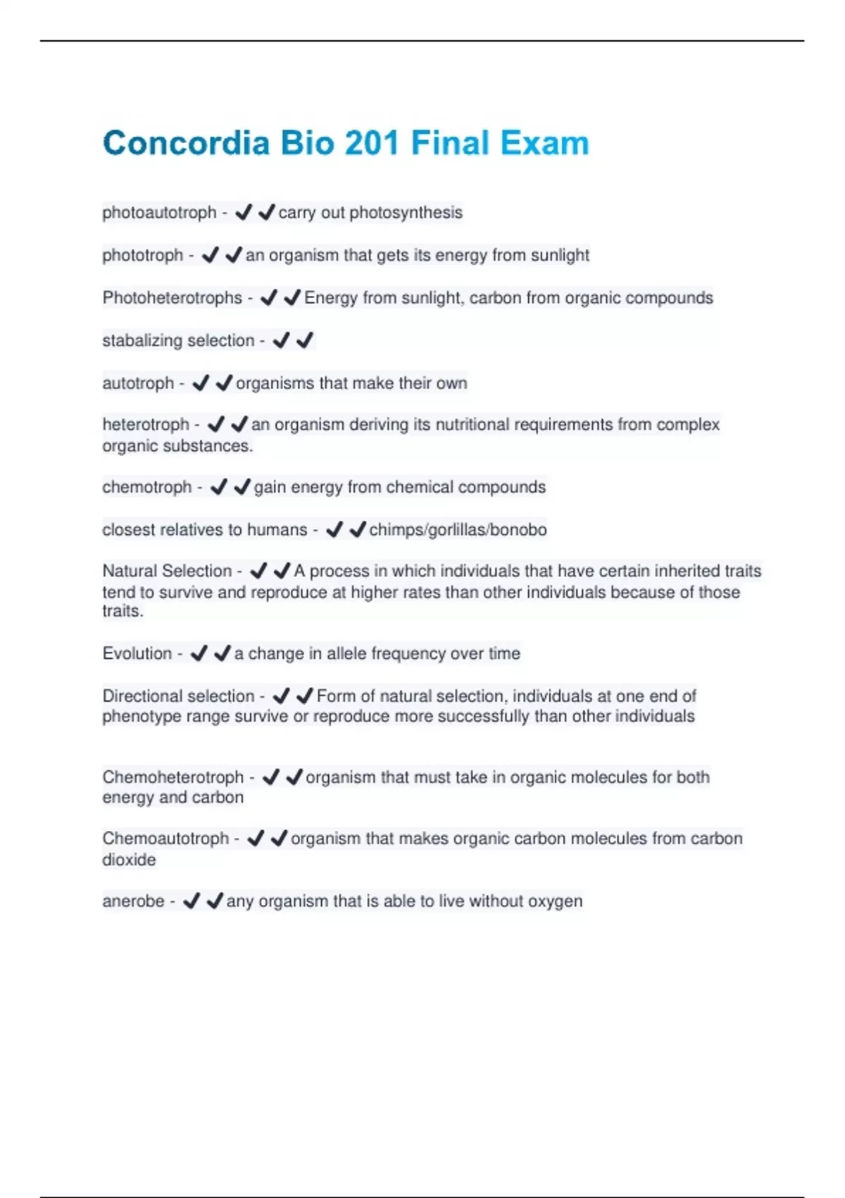 Concordia Bio 201 Final Exam Questions and Answers(A+ Solution guide)