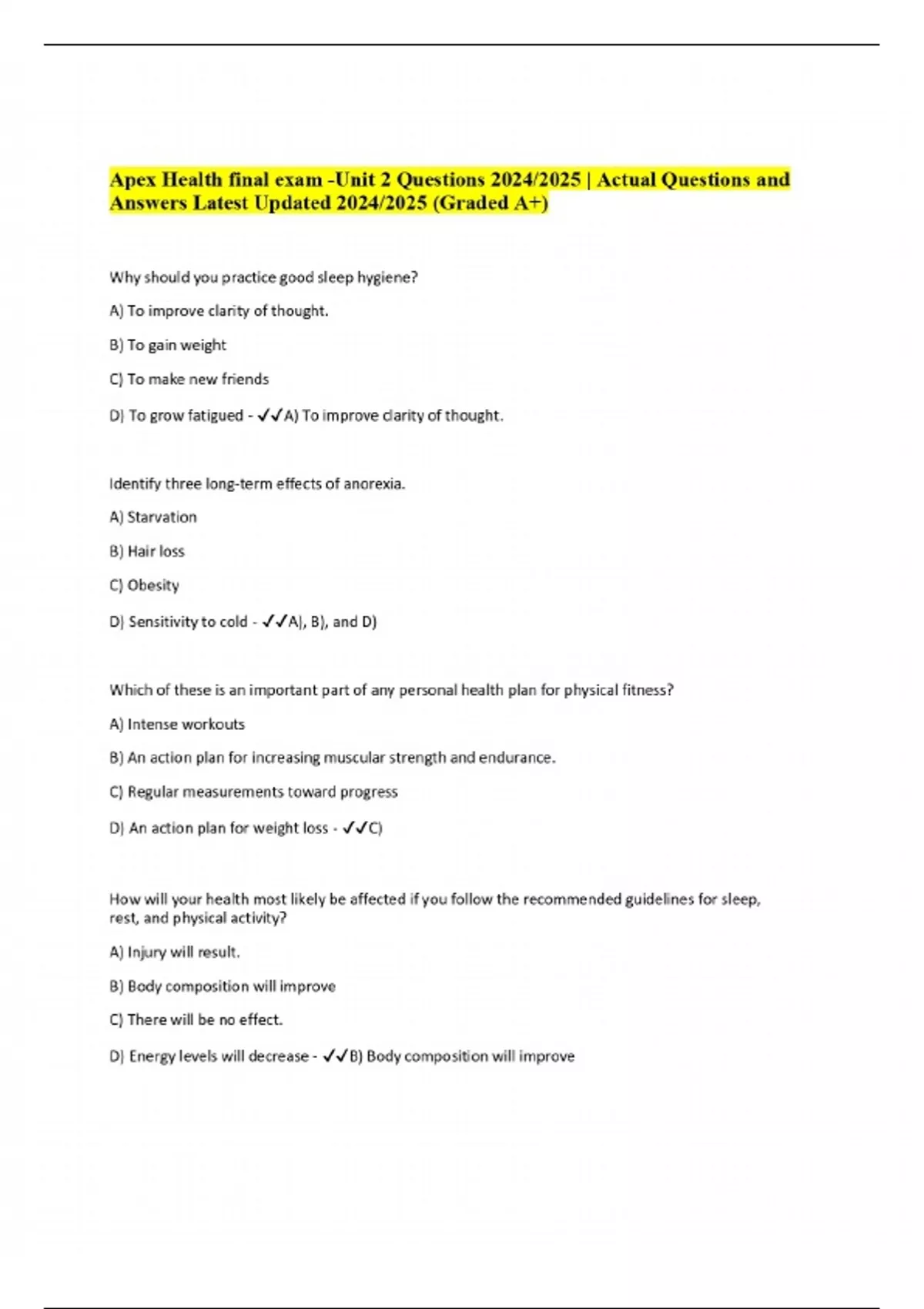 Package deal:::Apex Health Exams Compilation 2024/2025 with complete solutions