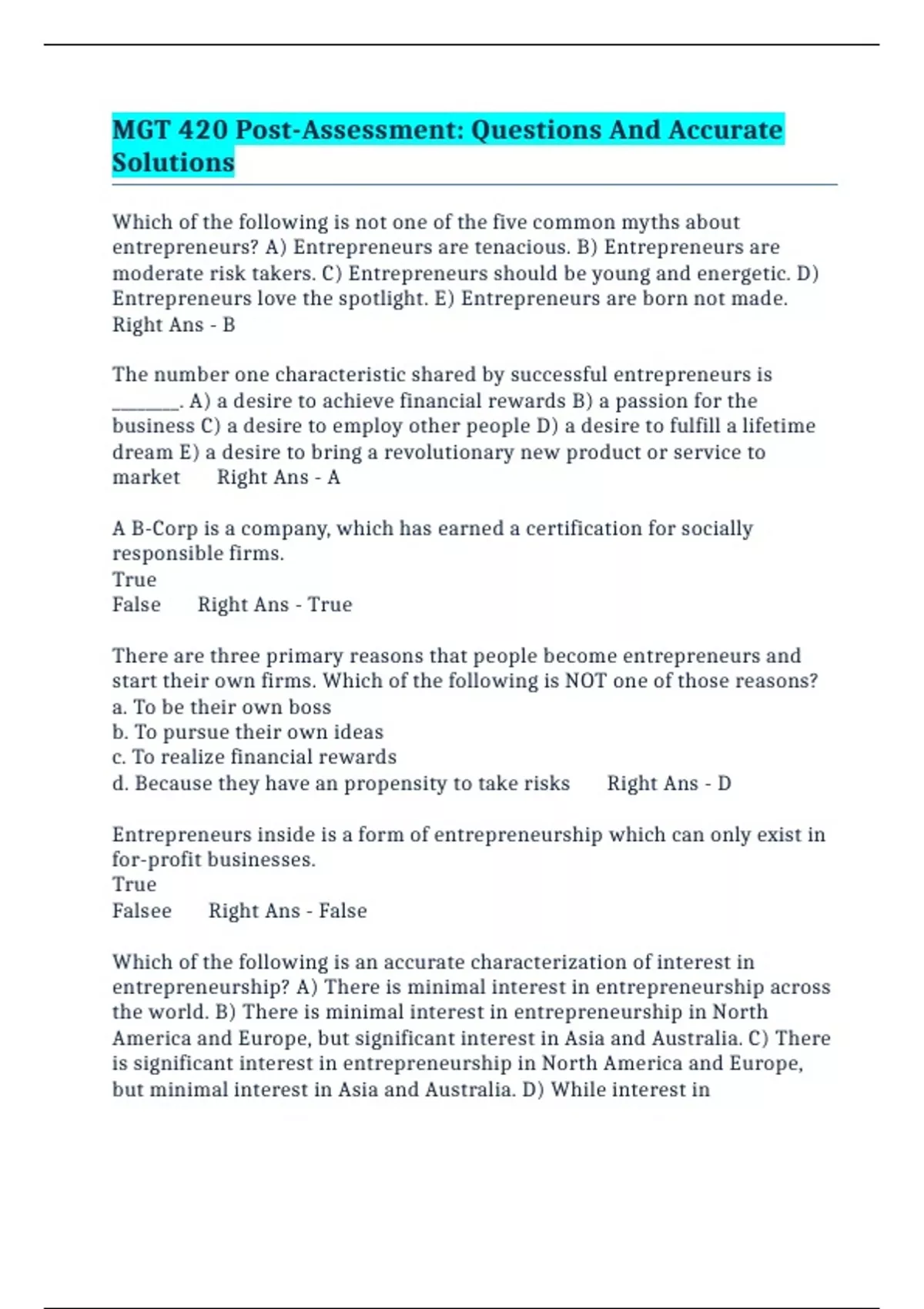 PACKAGE::- MGT 420 EXAMS (ULTIMATE BUNDLE)
