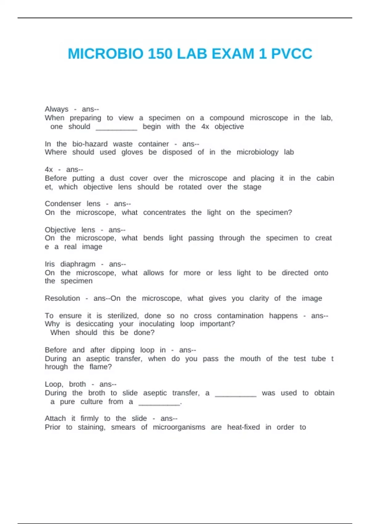 package deal MICROBIOLOGY LAB PRACTICAL EXAM STUDY GUIDE.docx