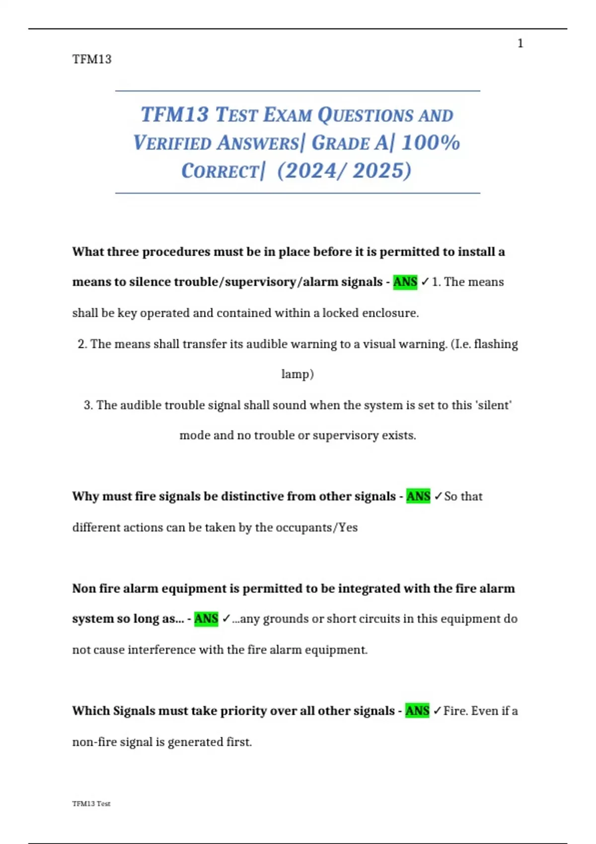 TFM11, TFM12, & TFM13 TEST EXAMINATIONs QUESTIONS AND VERIFIED ANSWERS| GRADE A| 100% CORRECT (NEW 2024/ 2025 UPDATE) PACKAGE DEAL