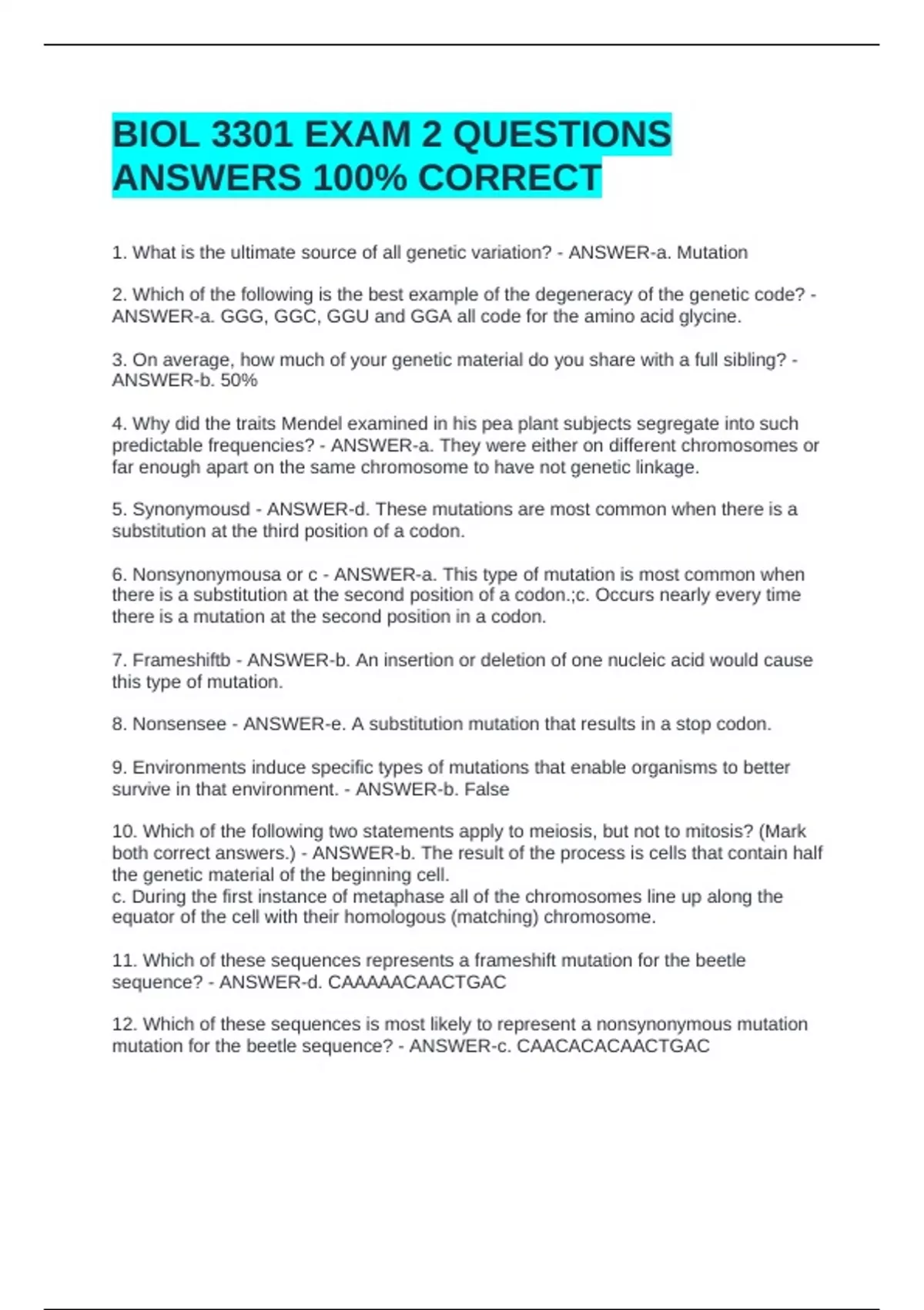 BIOL 3301 - EXAM BUNDLE|| QUESTIONS AND ANSWERS 100% CORRECT!!BIOL 3301 - EXAM BUNDLE|| QUESTIONS AND ANSWERS 100% CORRECT!!BIOL 3301 - EXAM BUNDLE|| QUESTIONS AND ANSWERS 100% CORRECT!!BIOL 3301 - EXAM BUNDLE|| QUESTIONS AND ANSWERS 100% CORRECT!!BIOL 3301 - EXAM BUNDLE|| QUESTIONS AND ANSWERS 100% CORRECT!!BIOL 3301 - EXAM BUNDLE|| QUESTIONS AND