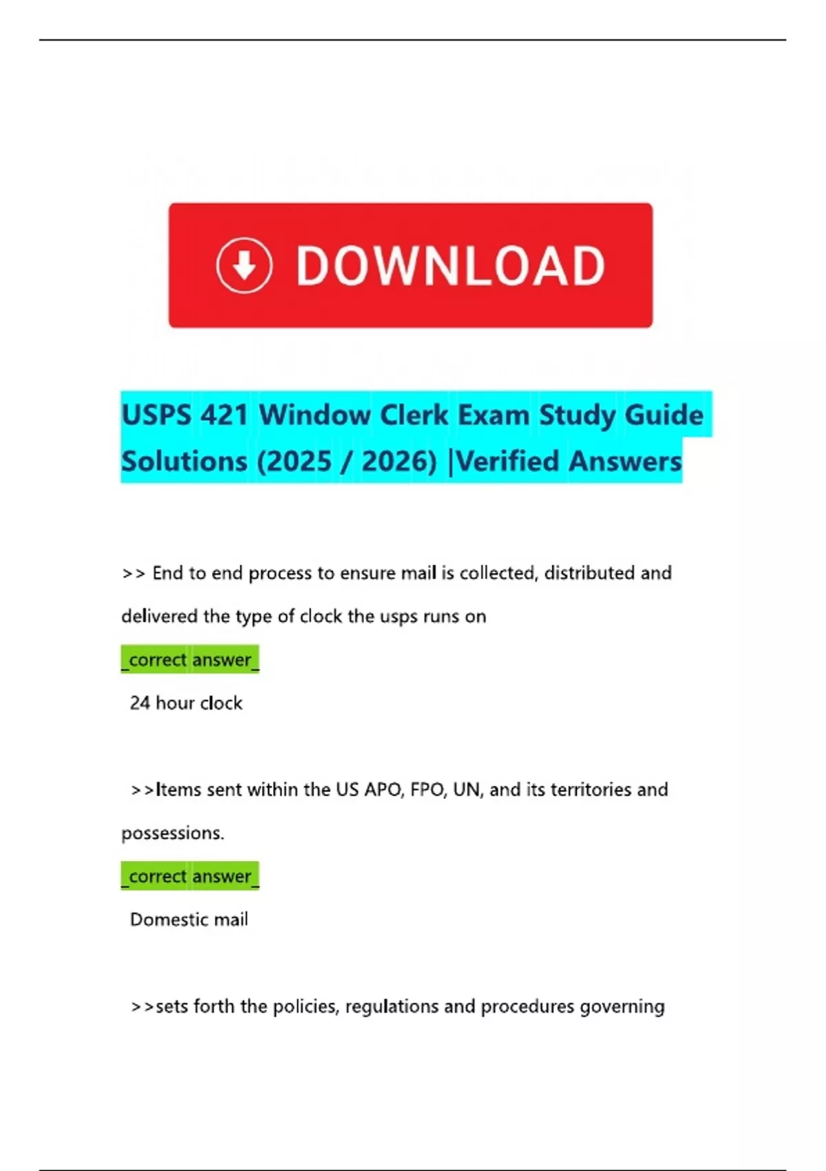 STUDY BUNDLE FOR USPS 421 Window Clerk Practice Test Exams with all complete solutions