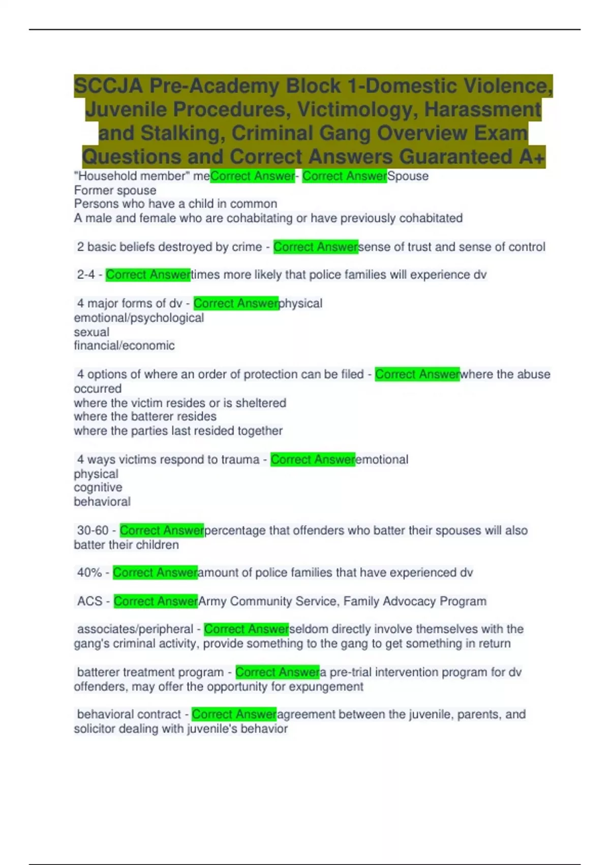 Special Basic SCCJA Latest Update Actual Exam from Credible Source 8 VERSIONS BUNDLED TOGETHER