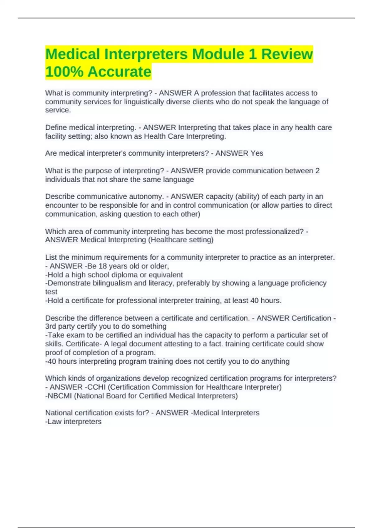 Medical Interpreter Questions & Answers(RATED A+)COMPLETE EXAM BUNDLEMedical Interpreter Questions & Answers(RATED A+)COMPLETE EXAM BUNDLEMedical Interpreter Questions & Answers(RATED A+)COMPLETE EXAM BUNDLEMedical Interpreter Questions & Answers(RATED A+)COMPLETE EXAM BUNDLEMedical Interpreter Questions & Answers(RATED A+)COMPLETE EXAM BUNDLE