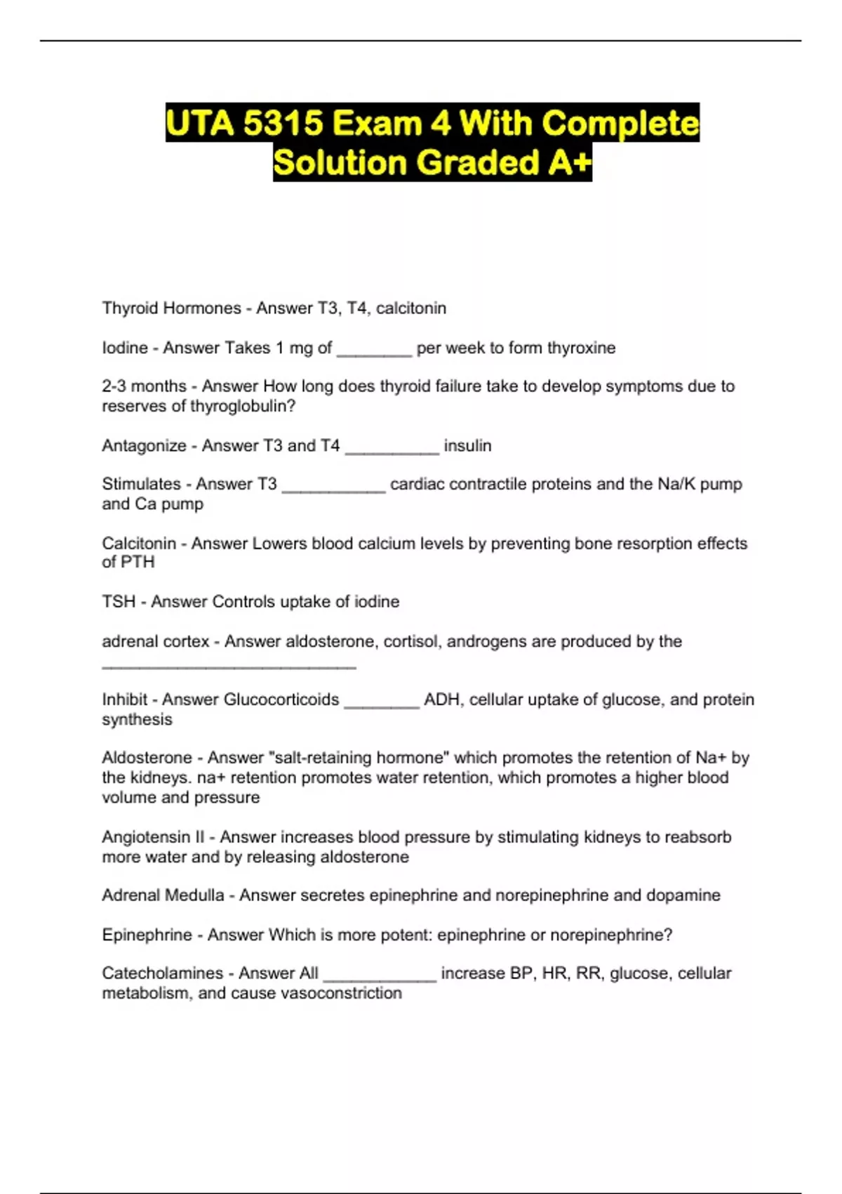 UTA 5315 Advanced Pathophysiology Summer Packaged Exams!!...