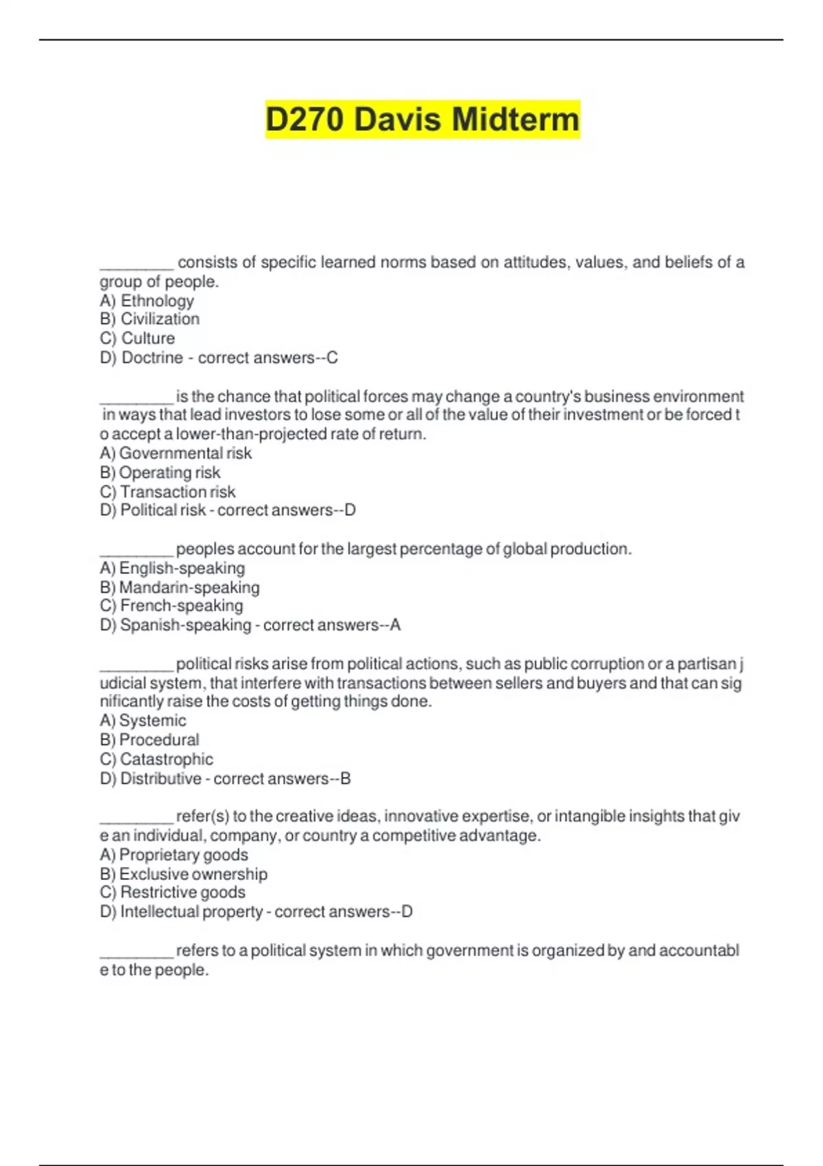 Davis D270 Final D270 Midterm Quizlet Garcia D270 Midterm Kolovou D270 Exam 1 D270 Davis Midterm