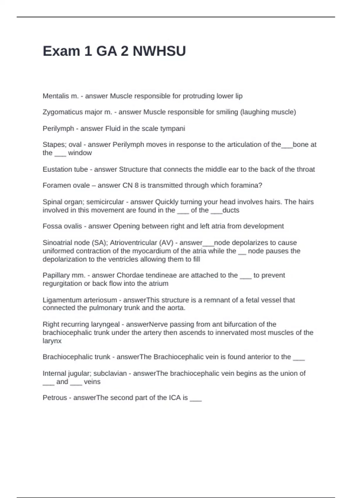 Exam 1 GA 2 NWHSU Questions and Answers 2024