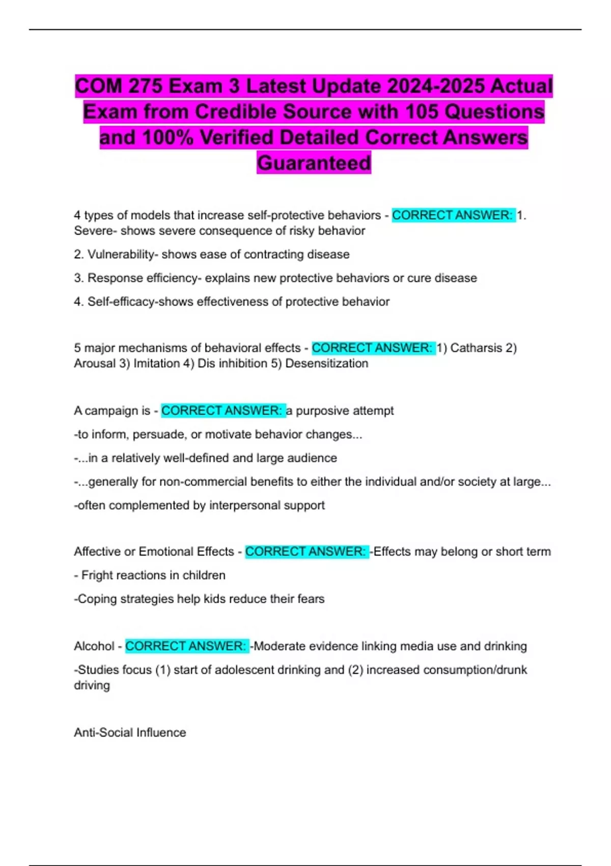 COM 275 Exam 3 Latest Update Actual Exam from Credible Source with Questions and 100% verified correct answers 2 versions