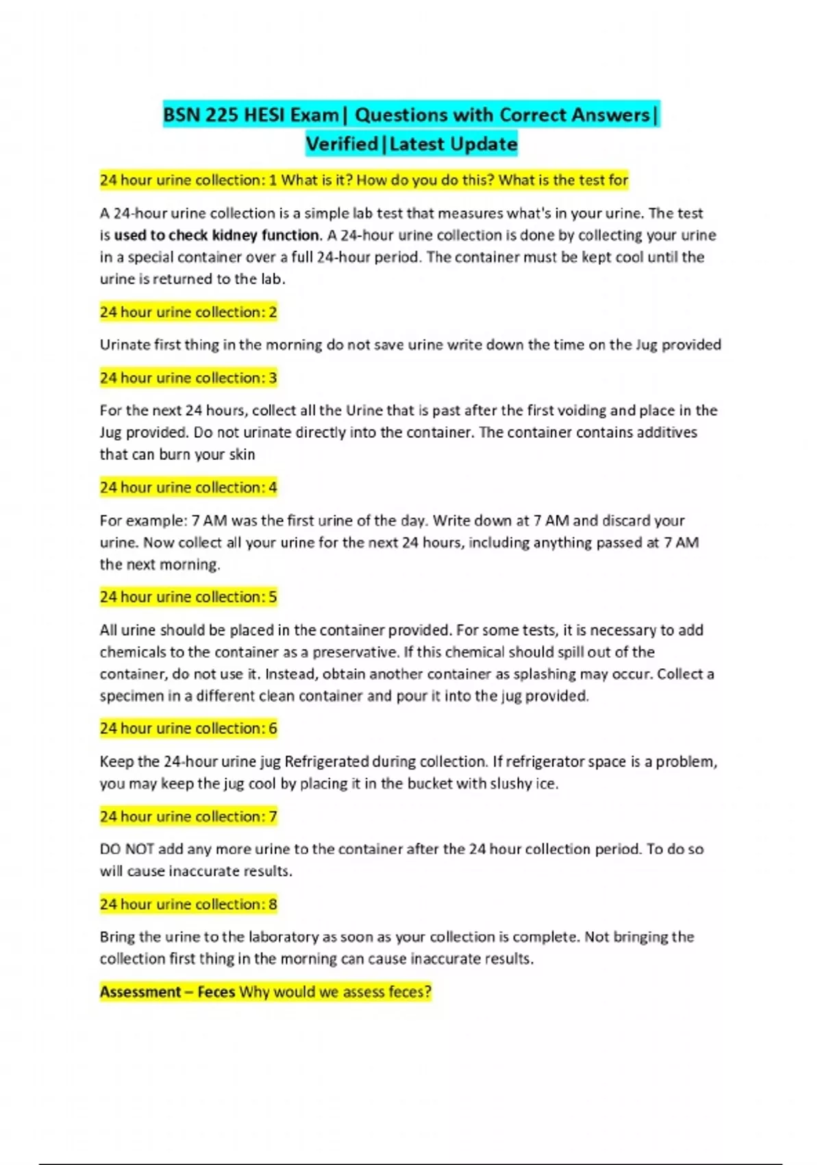 BSN 225 HESI EXAMS BUNDLE| Questions with Correct Answers| Verified| COMPLETE AND ACCURATE
