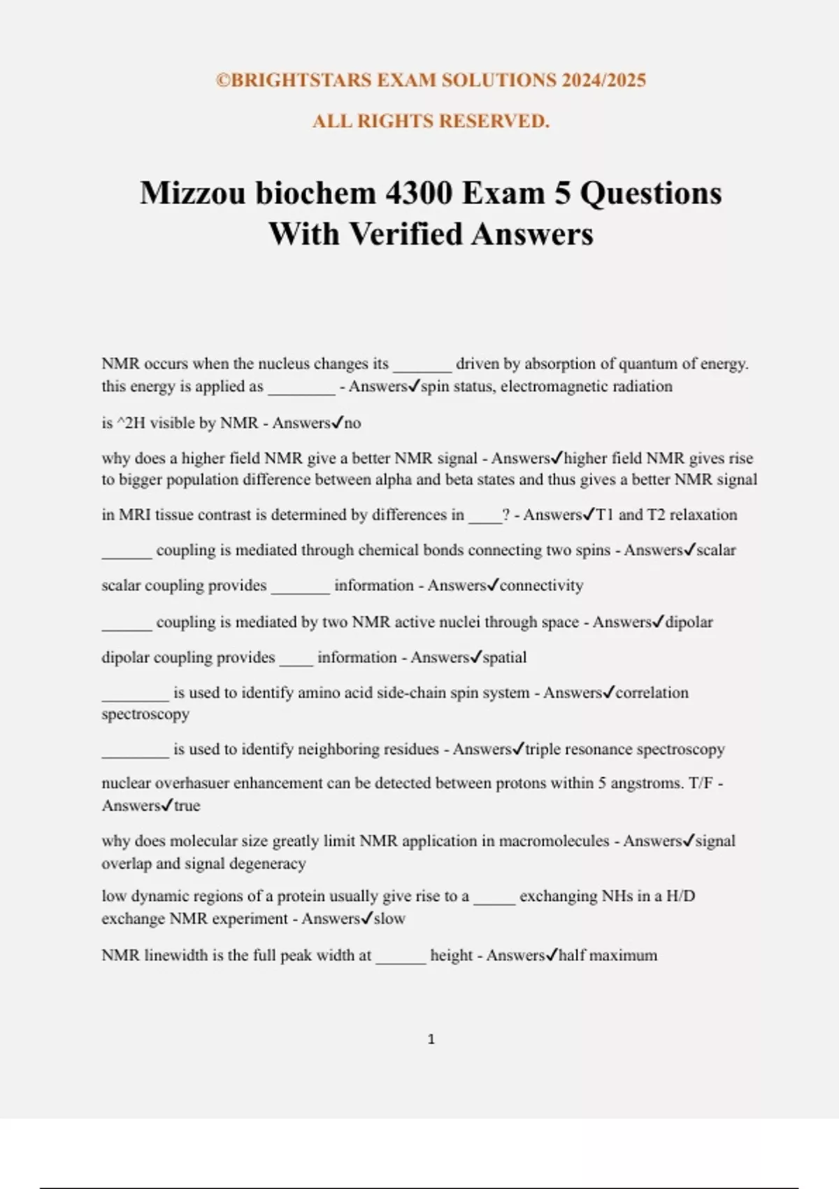 Mizzou biochem 4300 Exam 5 Questions With Verified Answers