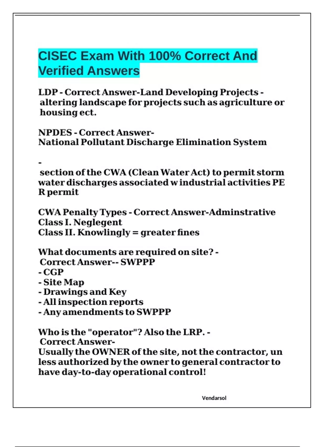 Package deal for CISEC Exam With 100% Correct And Verified Answers