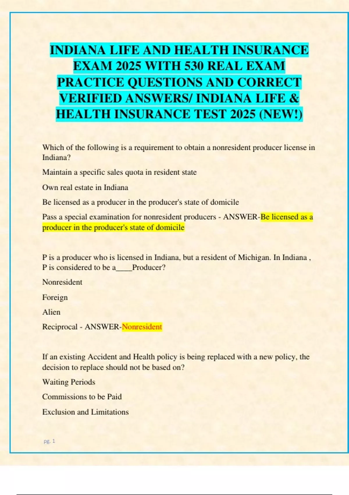 INDIANA LIFE AND HEALTH INSURANCE EXAM 2025 WITH 850+ REAL EXAM PRACTICE QUESTIONS AND CORRECT VERIFIED ANSWERS/ INDIANA LIFE & HEALTH INSURANCE TEST 2025 (NEW!)