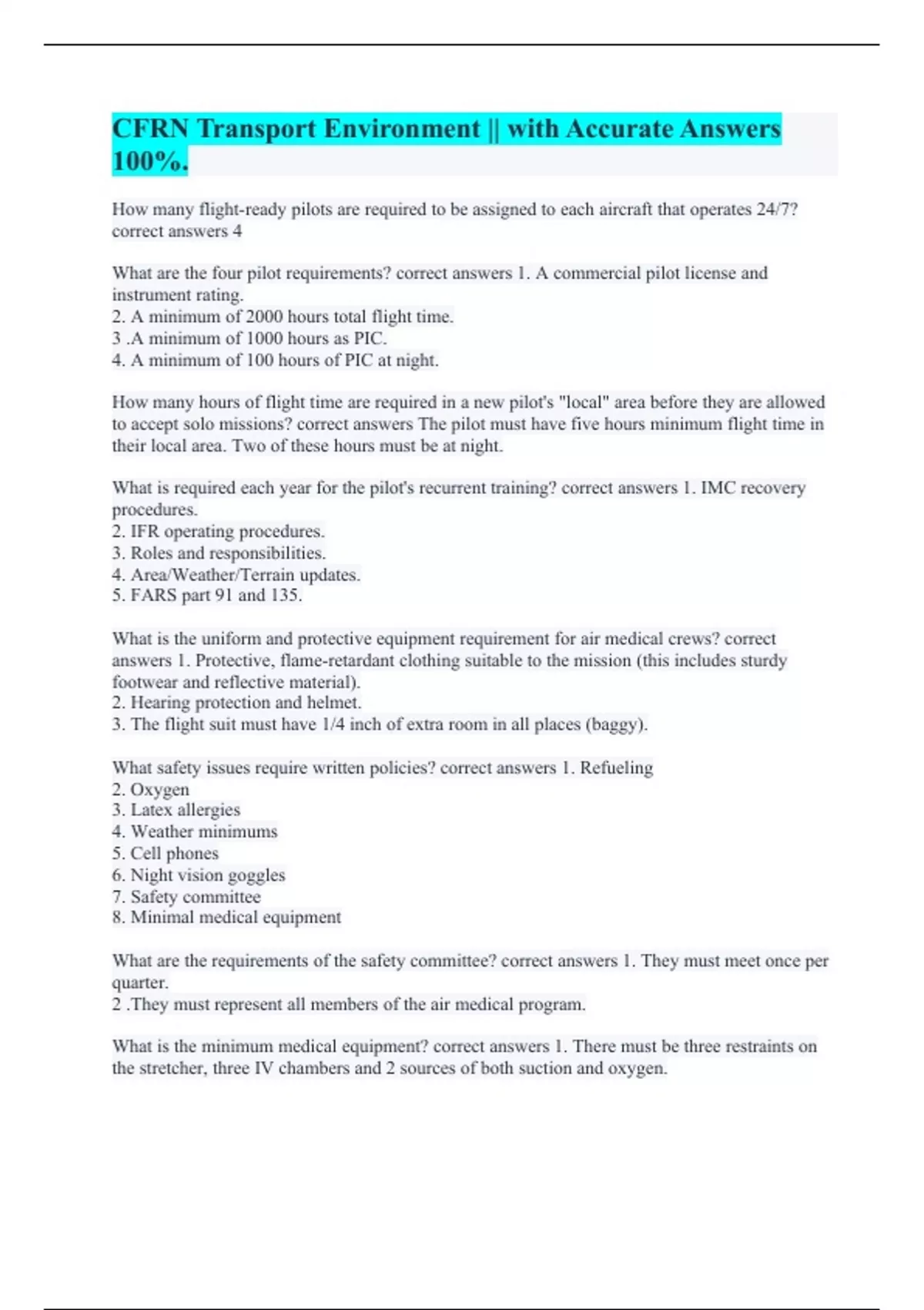 CFRN - Flight and Aircraft Fundamentals || with 100% Errorless Answers. Orion s CFRN/CTRN Exam prep || All Questions Answered Correctly. IA MED CFRN FINAL TEST || with Errorless Solutions 100%. CFRN: Aircraft Fundamentals || very Flawless. CFRN Transport Environment || with Accurate Answers 100%. CFRN Trauma || with Complete Solutions. CFRN ACE Gen