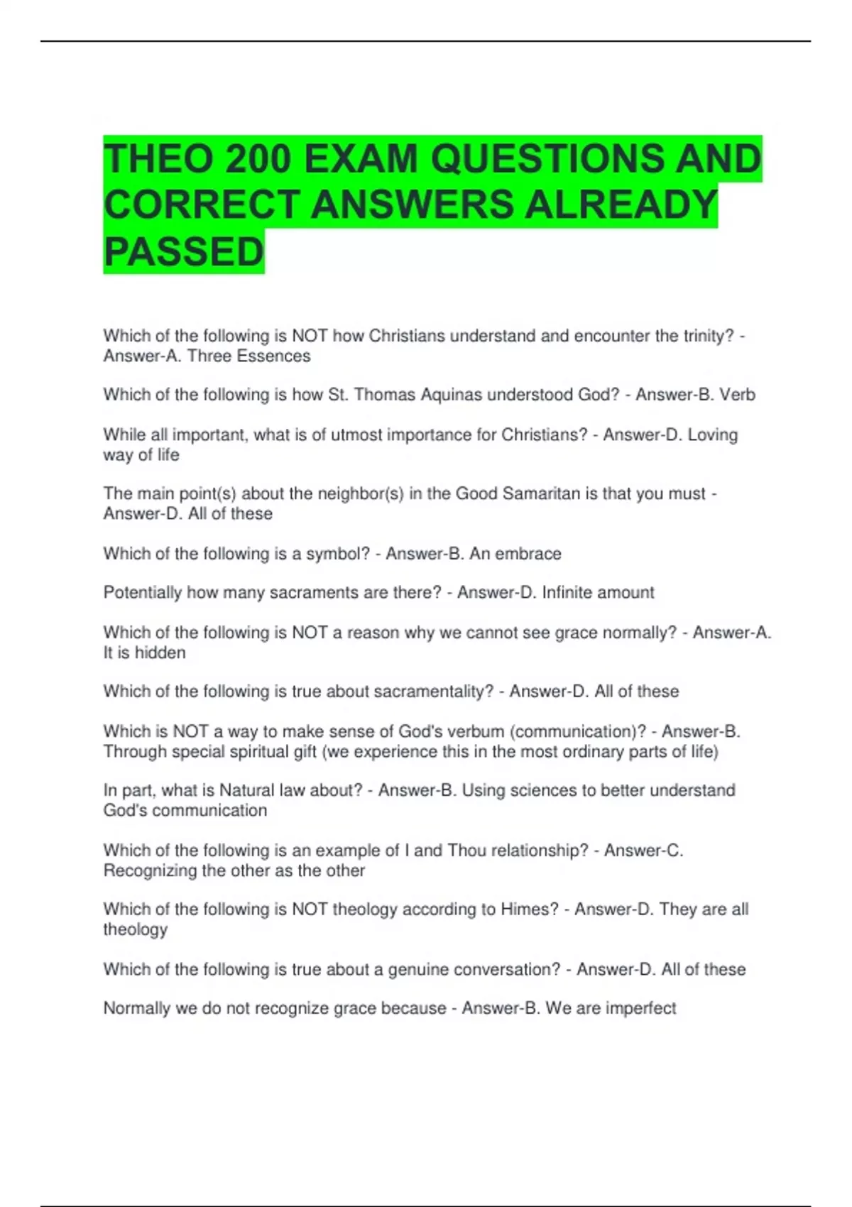 PRELIMS THEO 200 EXAM QUESTIONS WITH 100% CORRECT ANSWERS 2 Exam (elaborations) THEO 200 EXAM QUESTIONS AND CORRECT ANSWERS ALREADY PASSED 3 Exam (elaborations) THEO 200 FINAL EXAM QUESTIONS WITH 100% CORRECT ANSWERS 4 Exam (elaborations) THEO 200 Quiz 1 Questions with 100% Correct Answers 2024/2025 Update 5 Exam (elaborations) Theo 200 Exam 1