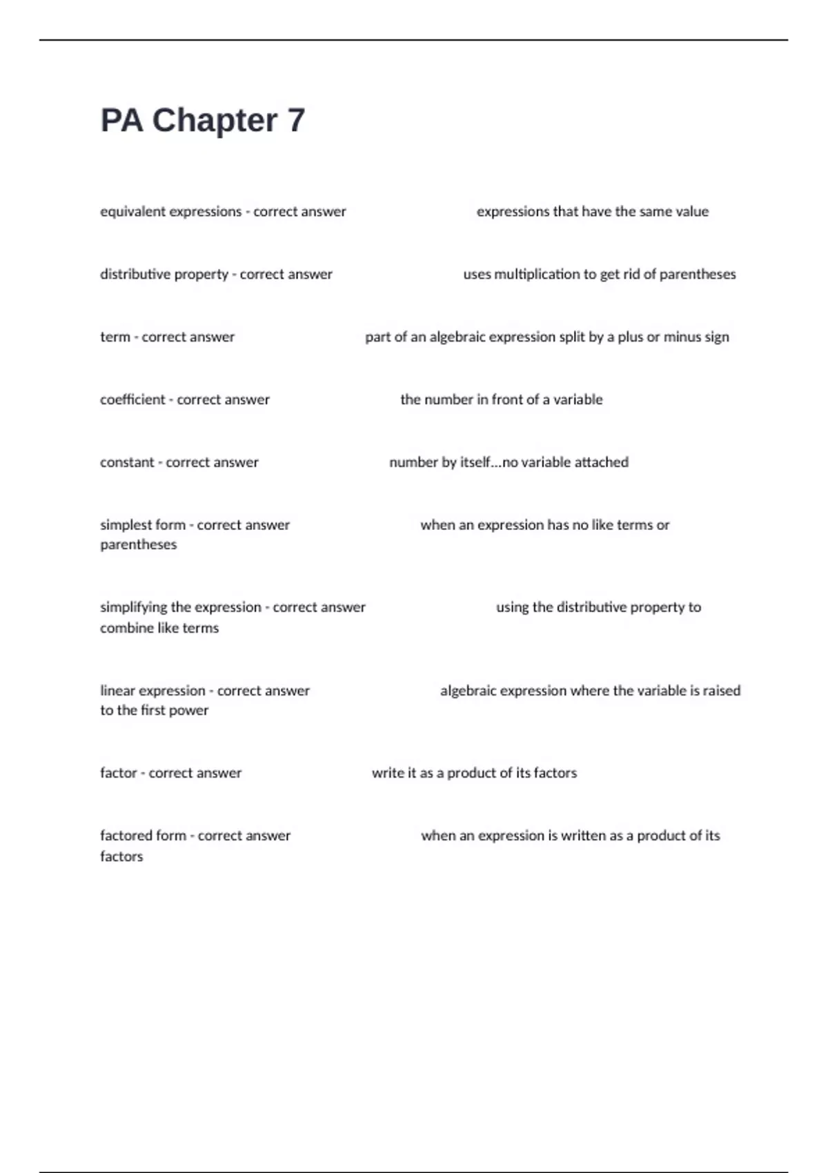 package deal of CHAPTER 7 All Subject Latest Version Correctly Answered.