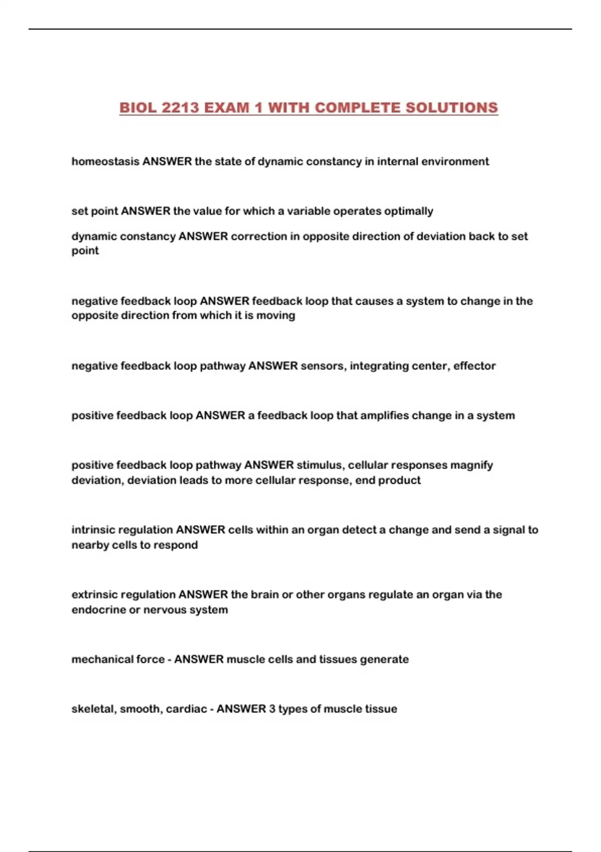 BIOL 2213 UNIT 1 EXAM WITH COMPLETE SOLUTIONS 100% VERIFIED