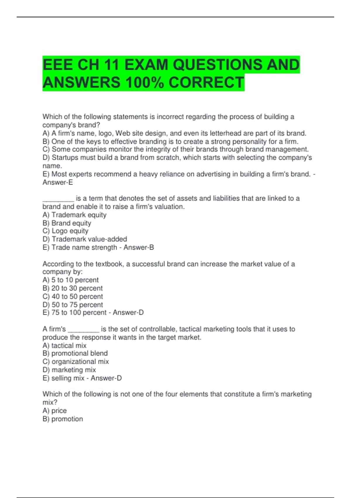 EEE CH 11 EXAM QUESTIONS AND ANSWERS 100% CORRECT 2 Exam (elaborations) EEE EXAM QUESTIONS AND CORRECT ANSWERS ALREADY PASSED 3 Exam (elaborations) EEE EXAM QUESTIONS AND ANSWERS 100% GUARANTEED PASS 4 Exam (elaborations) EEE Exam 1 Questions with All Correct Answers 5 Exam (elaborations) EEE 2023 Exam 2 Questions with All Correct Answers 6 Ex