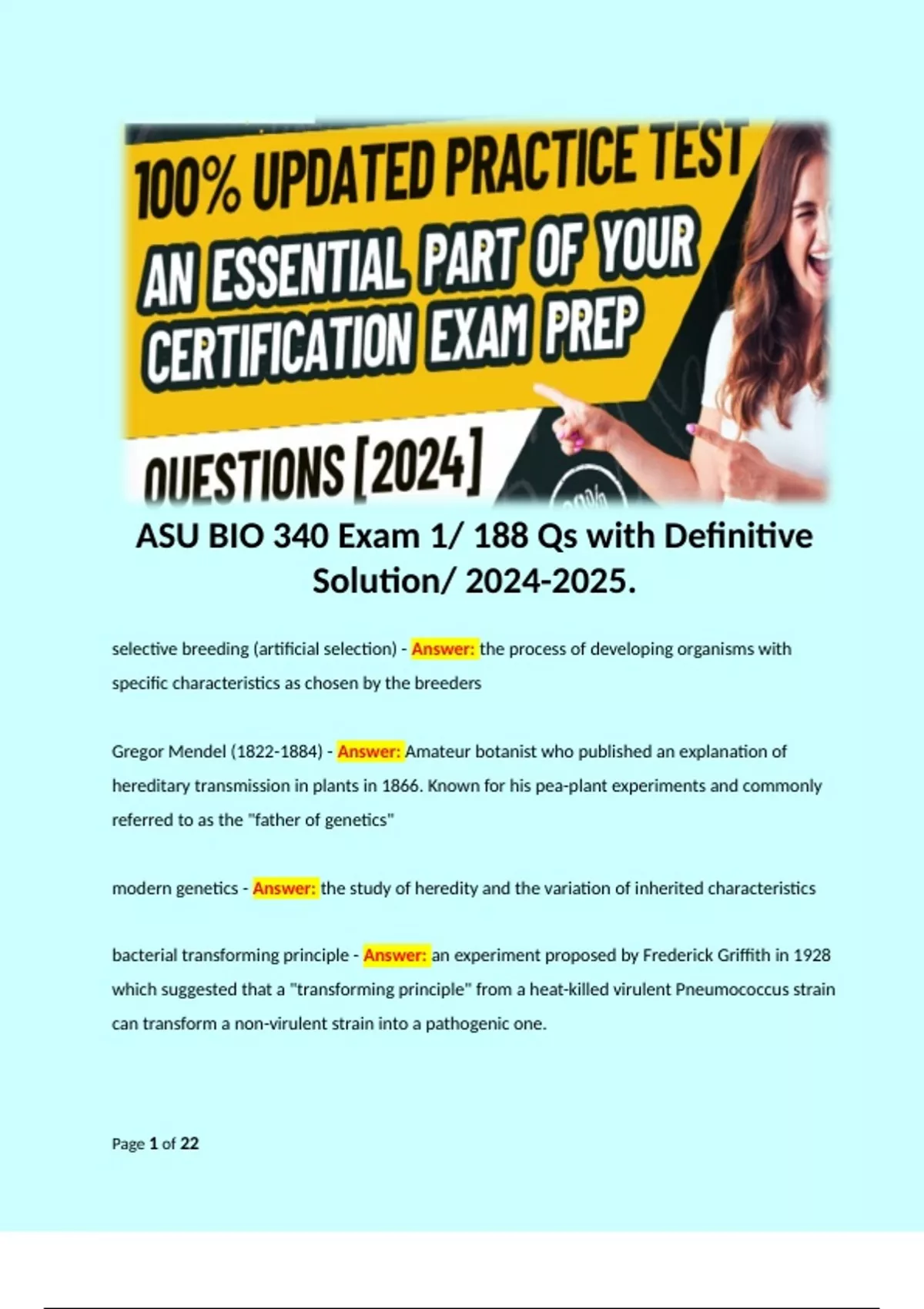 1 Exam (elaborations) ASU BIO 340 Exam 1/ 188 Qs with Definitive Solution/ 2 Exam (elaborations) BIO 340: Genetics Exam III (Mangone) 118 Q&A/ Already Graded A+. 3 Exam (elaborations) BIO 340 Final Exam/ 491 Qs & Ans/ A+ Score Solution/ . 4 Exam (elaborations) Holechek Bio 340 Exam 3/ 53 Quizzes with Certified Ans/ Already Gra
