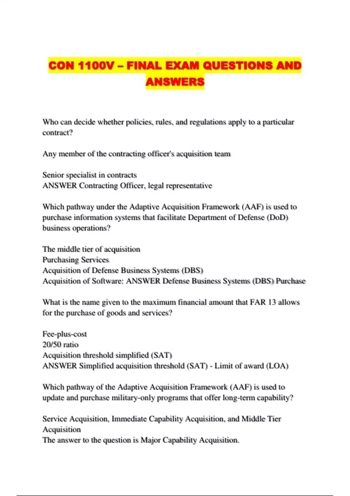 CON 1100V – FINAL EXAM QUESTIONS AND ANSWERS