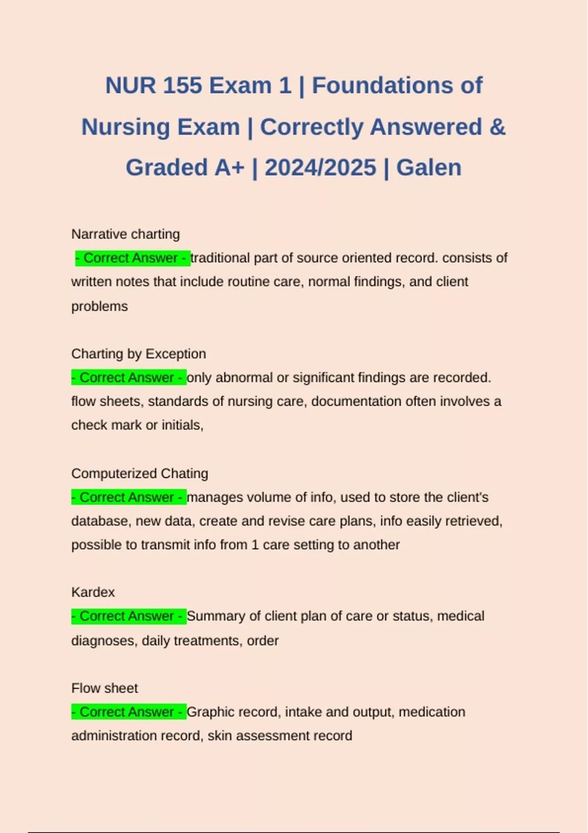 NUR 155 Exam 1 | Foundations of Nursing Exam | Correctly Answered & Graded A+ | 2024/2025 | Galen