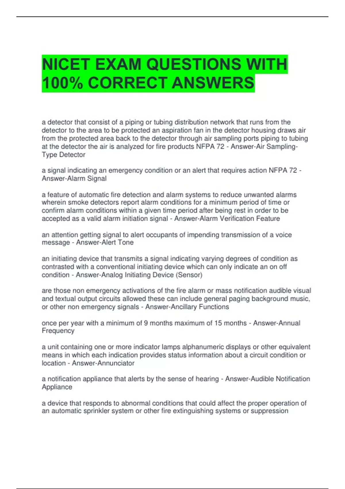 NICET EXAM QUESTIONS WITH 100% CORRECT ANSWERS 2 Exam (elaborations) NICET 2 EXAM QUESTIONS WITH ALL CORRECT ANSWERS 2024 LATEST UPDATE 3 Exam (elaborations) NICET 1 EXAM QUESTIONS AND ANSWERS 100% CORRECT 4 Exam (elaborations) NICET 1 EXAM QUESTIONS WITH 100% CORRECT ANSWERS 5 Exam (elaborations) NICET 1 EXAM QUESTIONS WITH CORRECT ANSWERS 6