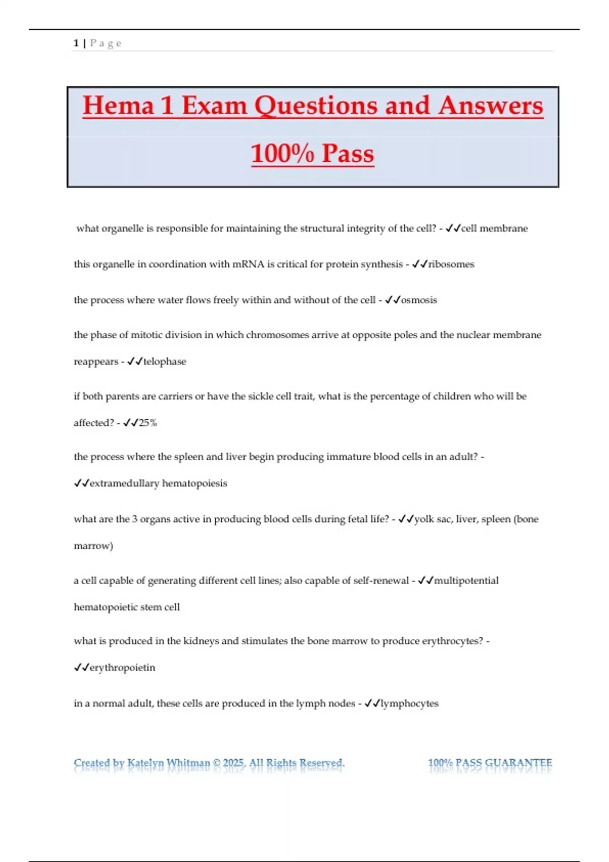 Hematology Bundled Exams Questions and Answers 100% Pass, Guaranteed.