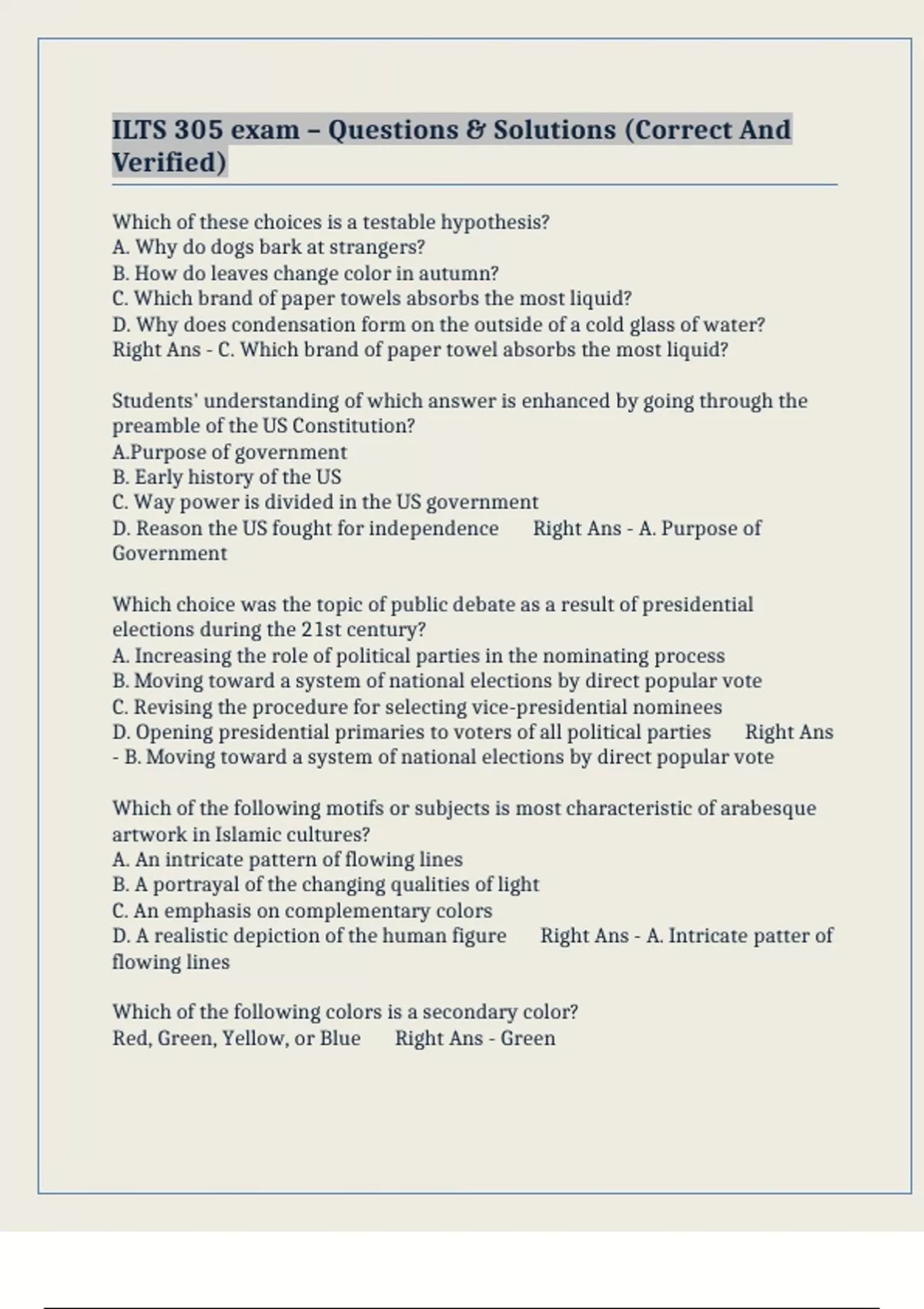 BUNDLE:- ILTS 305 EXAMS (LATEST UPDATE)