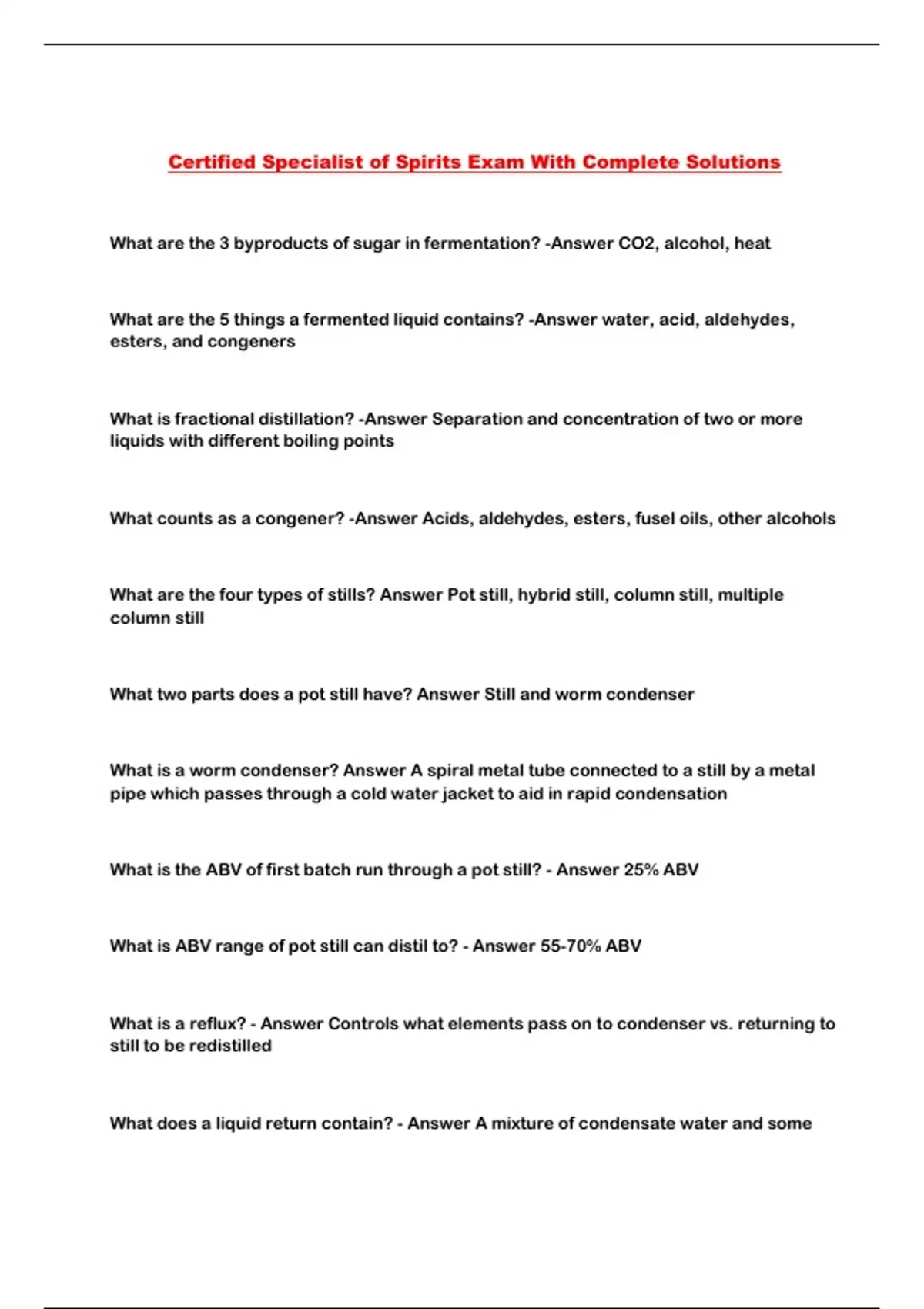 Certified Specialist of Spirits Exam With Complete Solutions