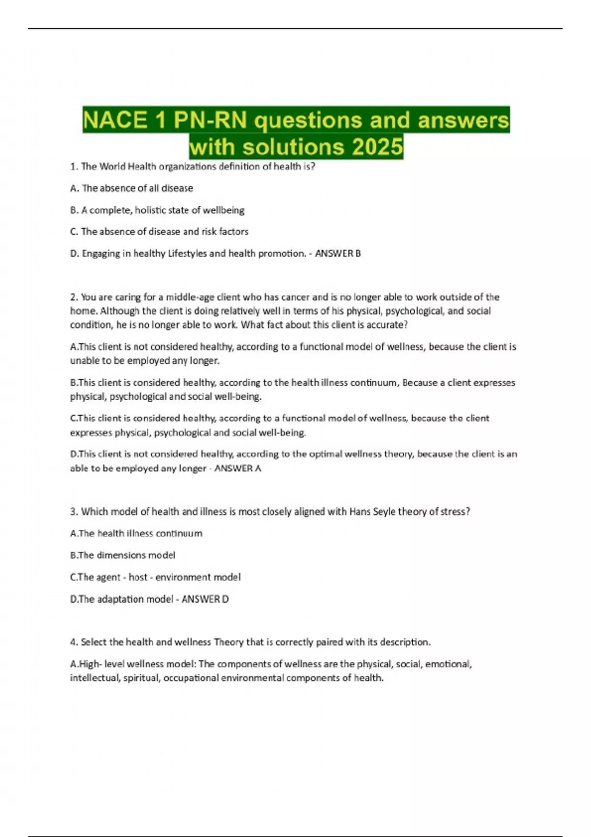NURSING ACCELERATION CHALLENGE Exam (NACE) I PN-RN Foundations of Nursing questions and answers with solutions 2025