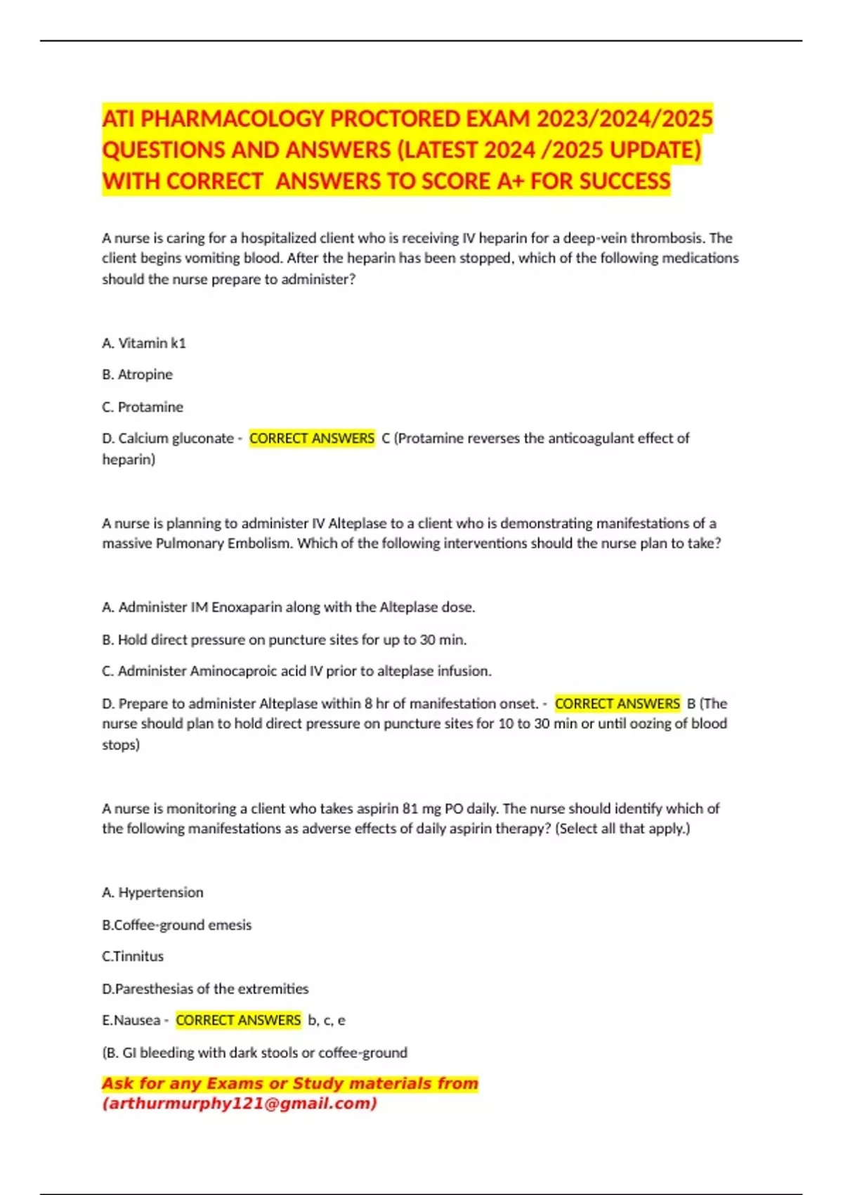 ATI PHARMACOLOGY PROCTORED EXAM 2023/2024/2025 QUESTIONS AND ANSWERS (LATEST 2024 /2025 UPDATE) WITH CORRECT ANSWERS TO SCORE A+ FOR SUCCESS