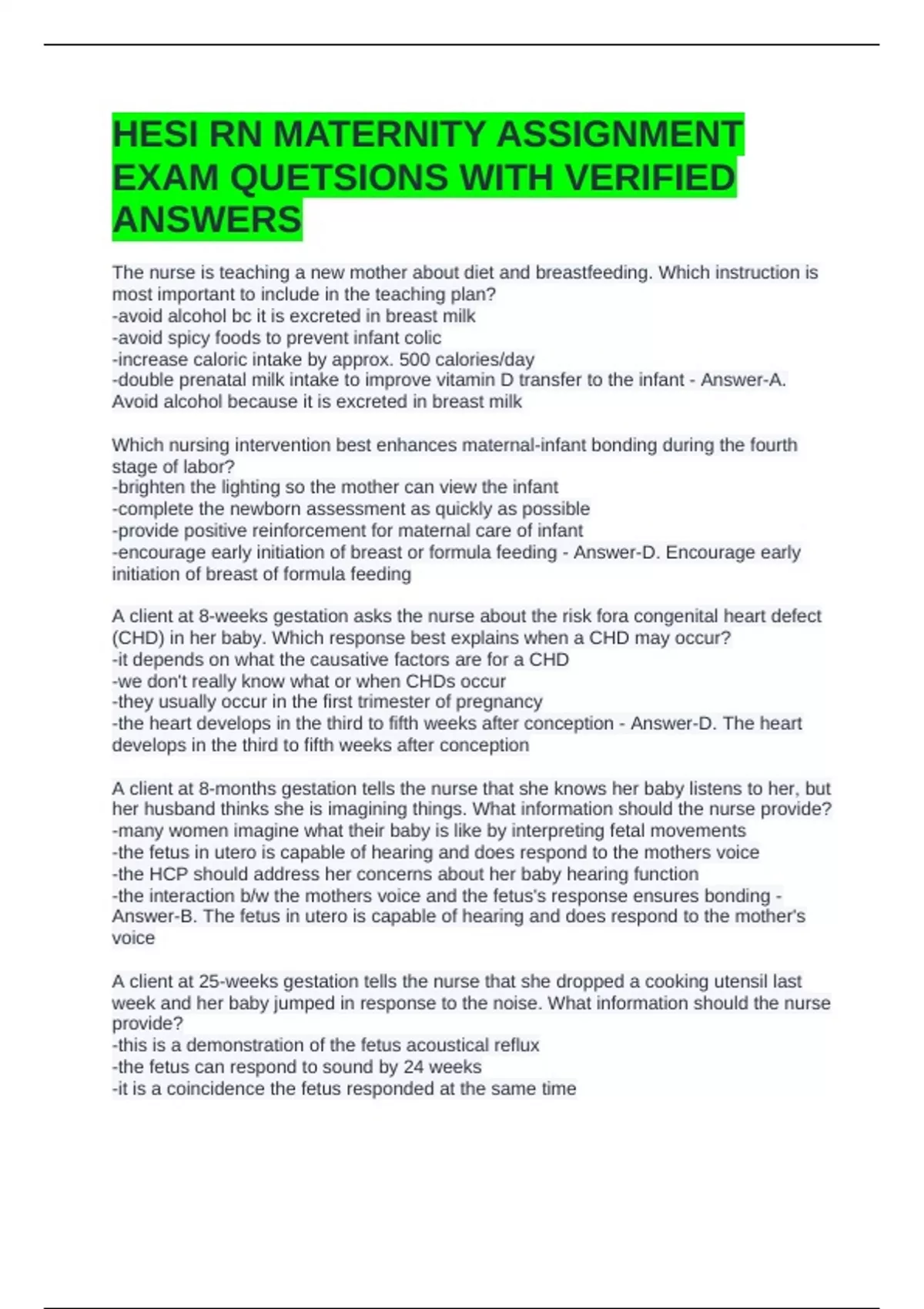 WGU OB HESI TERMS EXAM QUESTIONS AND ANSWERS 2 Exam (elaborations) RN HESI MATERNITY EXAM QUESTIONS AND ANSWERS 3 Exam (elaborations) PEDS & OB HESI EXAM QUESTIONS WITH COMPLETE SOLUTIONS 4 Exam (elaborations) PEDI/OB HESI FINAL EXAM QUESTIONS AND ANSWERS 5 Exam (elaborations) OB/PEDS HESI PRACTICE TEST QUESTIONS AND ANSWERS 6 Exam (elaboratio