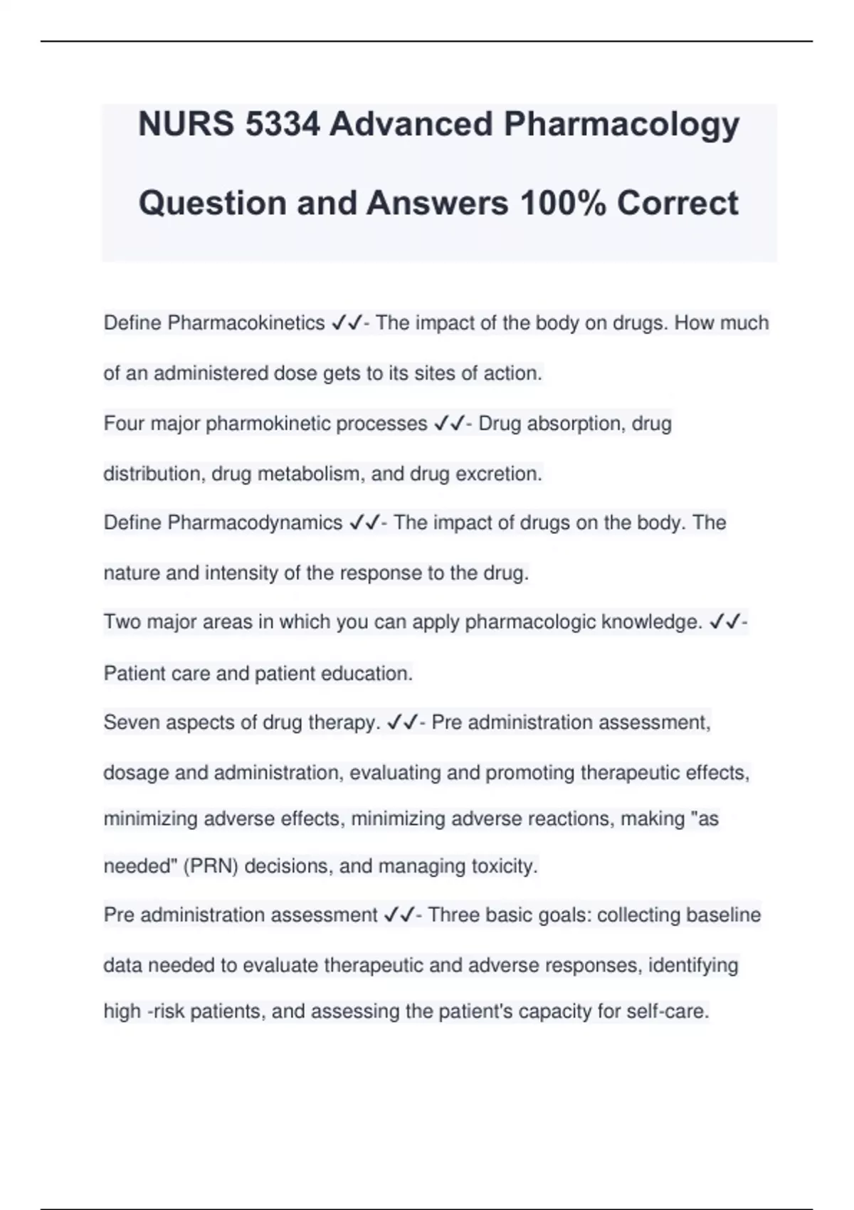 ADVANCED PHARMACOLOGY EXAM PACKAGE DEAL QUESTIONS AND VERIFIED ANSWERS 100% GUARANTEED PASS | LATEST UPDATE