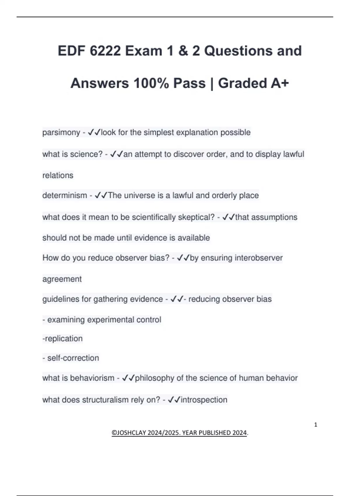 EDF 6222 Exam Questions and Answers 100% Solved | Graded A+