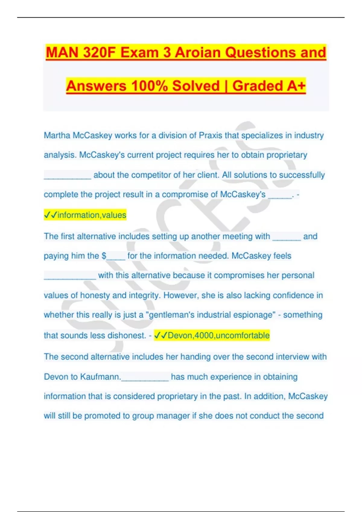 MAN 320F Exam 3 Aroian Questions and Answers 100% Solved | Graded A+