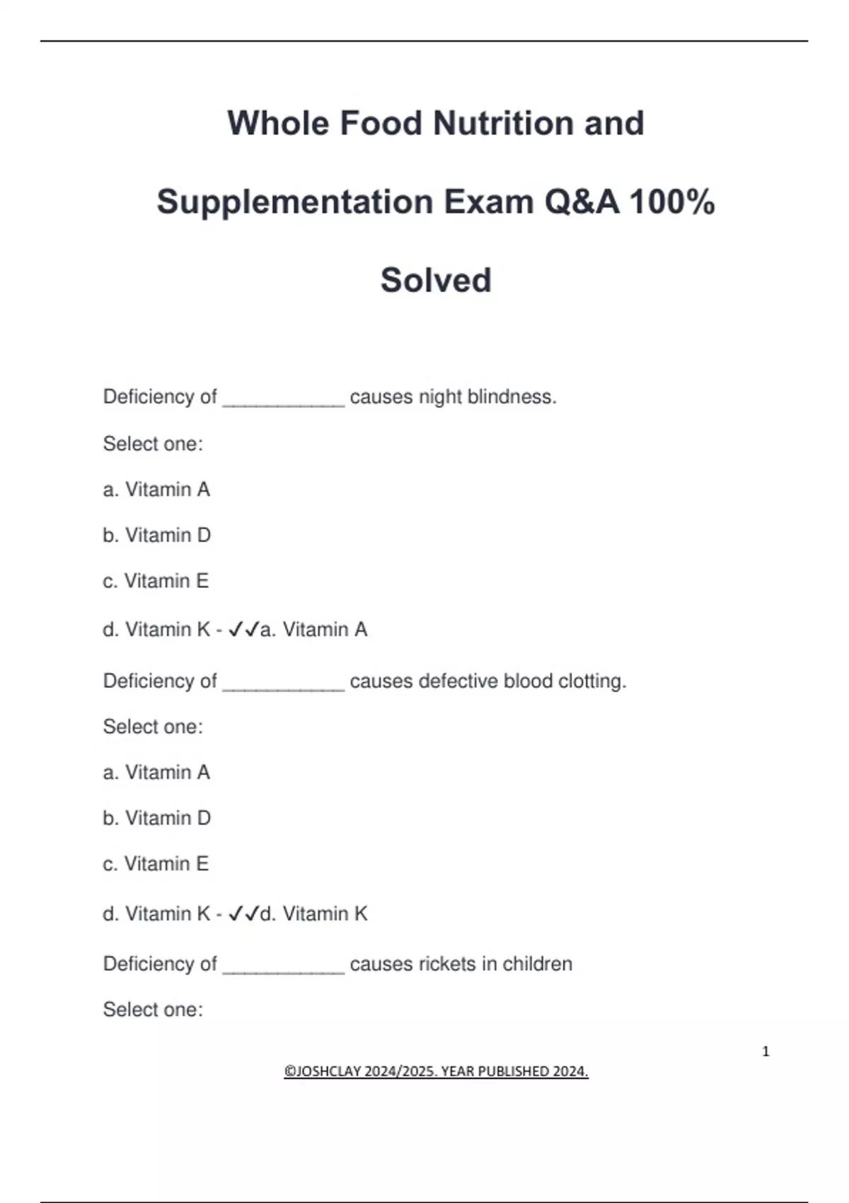 Whole Food Nutrition and Supplementation Exam Q&A 100% Solved
