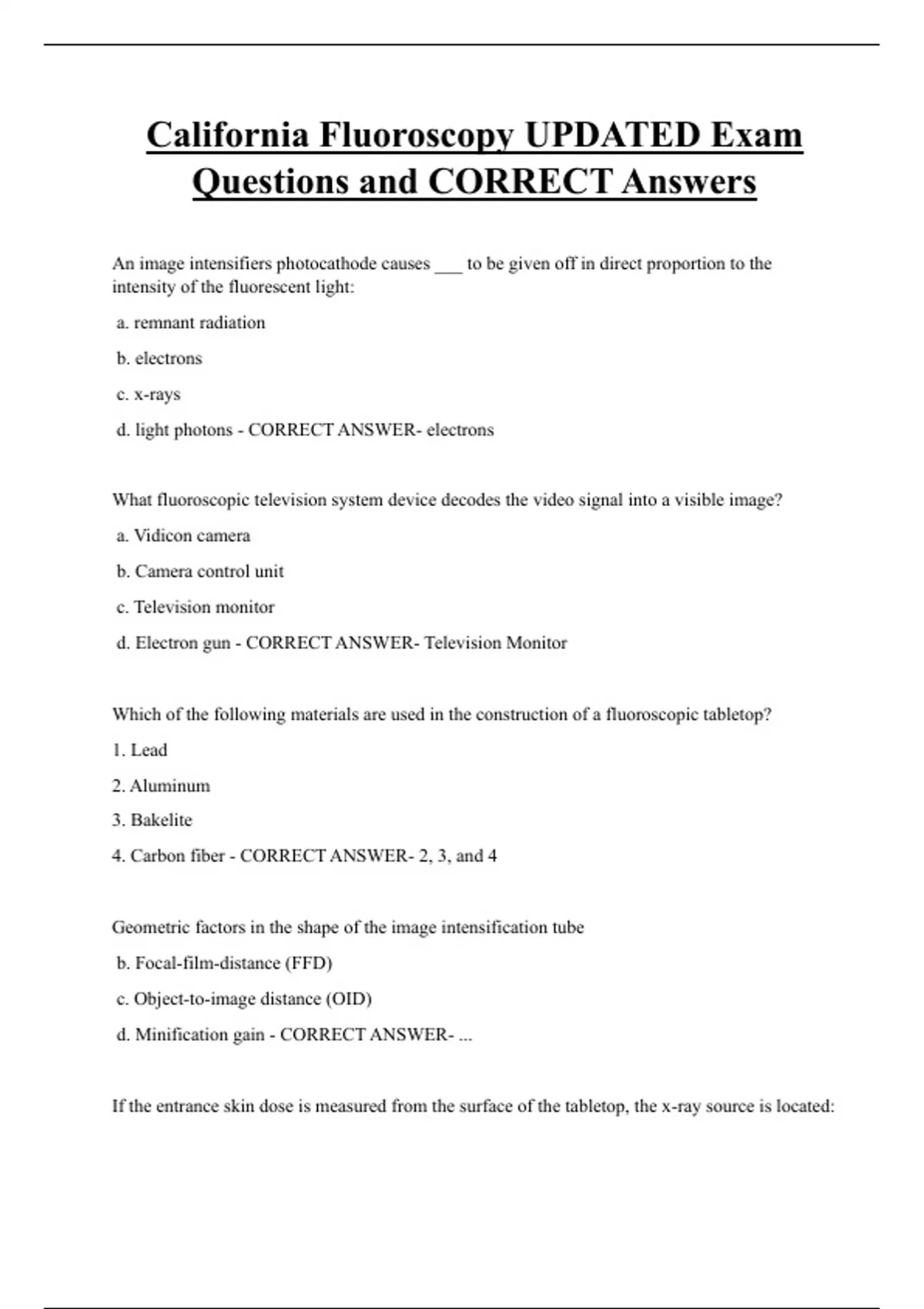 Fluoroscopy Bundled Exam Questions and CORRECT Answers